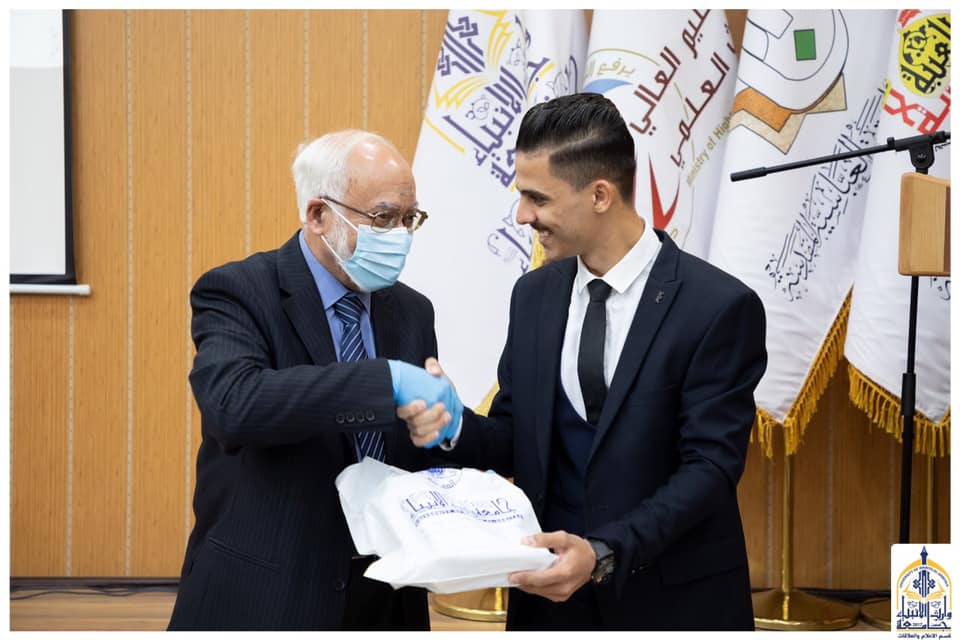 تثميناً للجهود القيمة المبذولة من قبل طلبتها الاعزاء لتحقيق المراكز الاولى في الامتحانات النهائية ، أقامت جامعة وارث الانبياء(عليه السلام) حفلاً بهيجاً احتفاءً وتكريماً للطلبة الاوائل مع الالتزام بالضوابط الصحية وبحضور السيد معاون الامين العام ورئيس قسم التعليم العالي في العتبة الحسينية المقدسة الدكتور افضل الشامي والسيد رئيس الجامعة الأستاذ الدكتور طالب حسن موسى والسادة المساعدين وعمداء الكليات واعضاء هيئة التدريس .