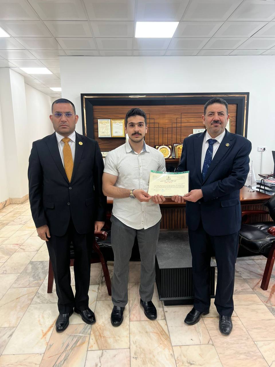 كرّمت عمادة الكلية الطالب محمد عماد شاني تقديرًا لمشاركته الفاعلة في إقامة الندوة العلمية الموسومة «الدعم النفسي لدى مرضى الاكتئاب».