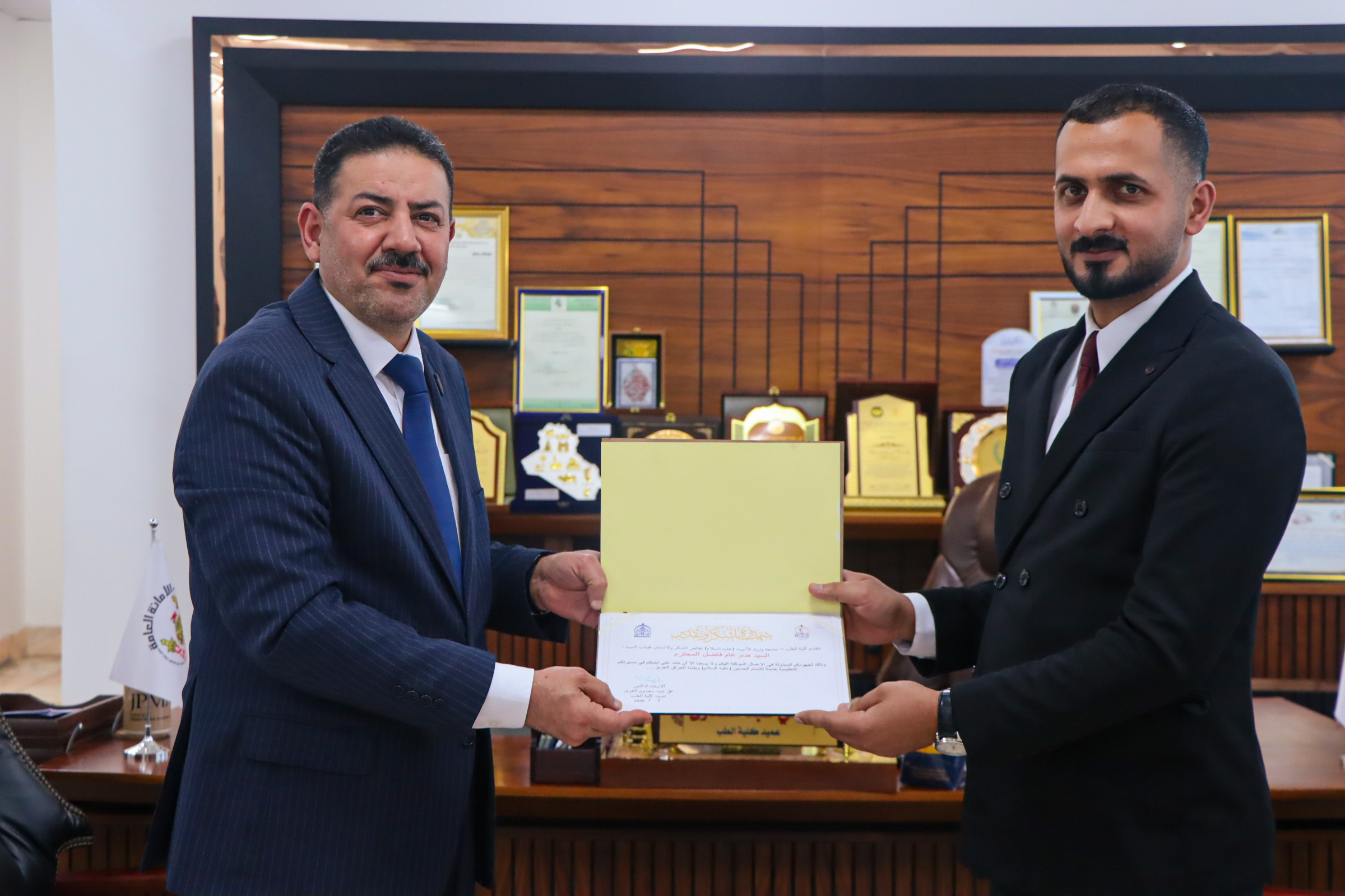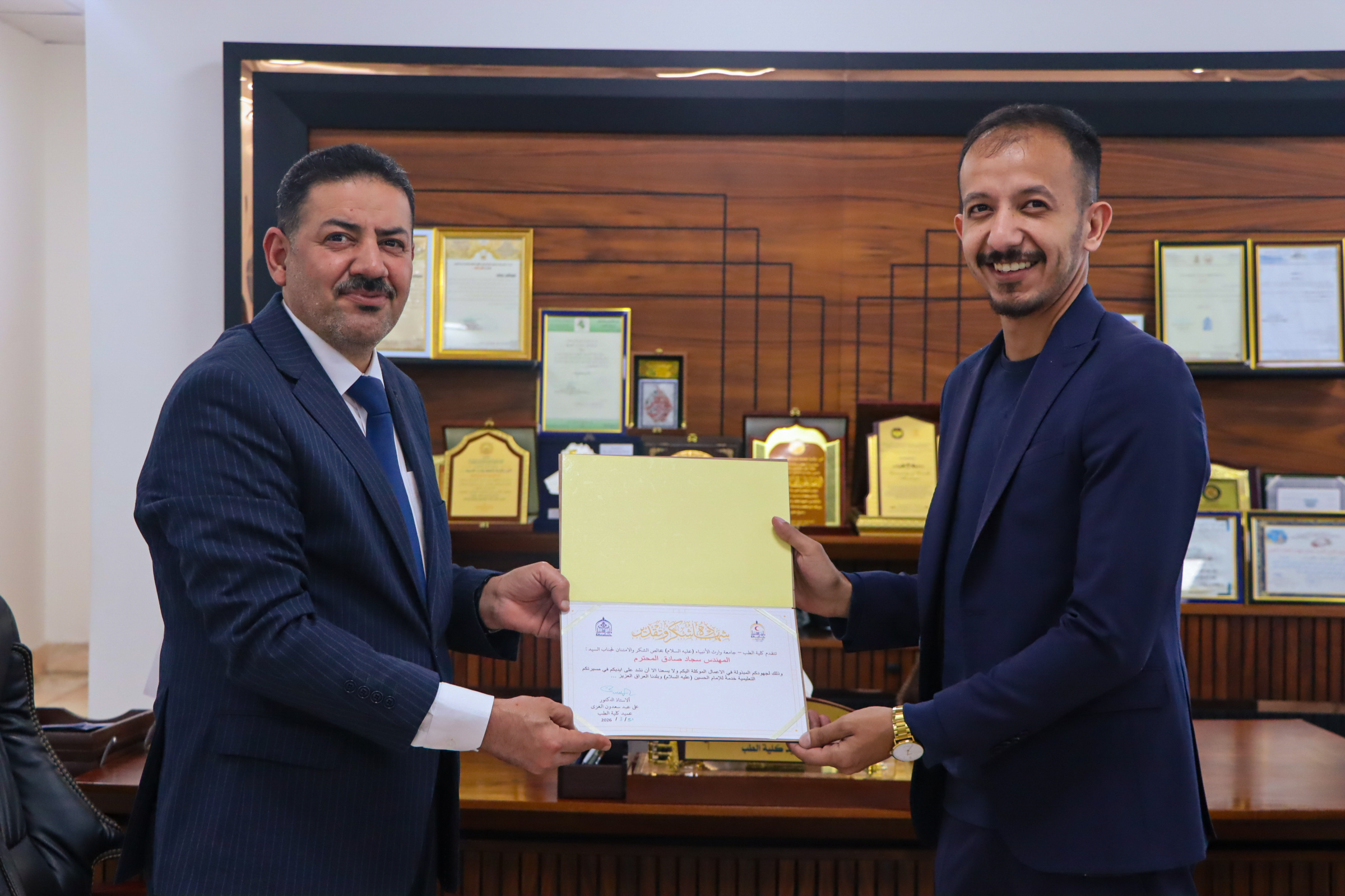 كرّم السيد عميد كلية الطب في جامعة وارث الأنبياء الأستاذ الدكتور علي عبد سعدون الشعبة الرقمية في الكلية