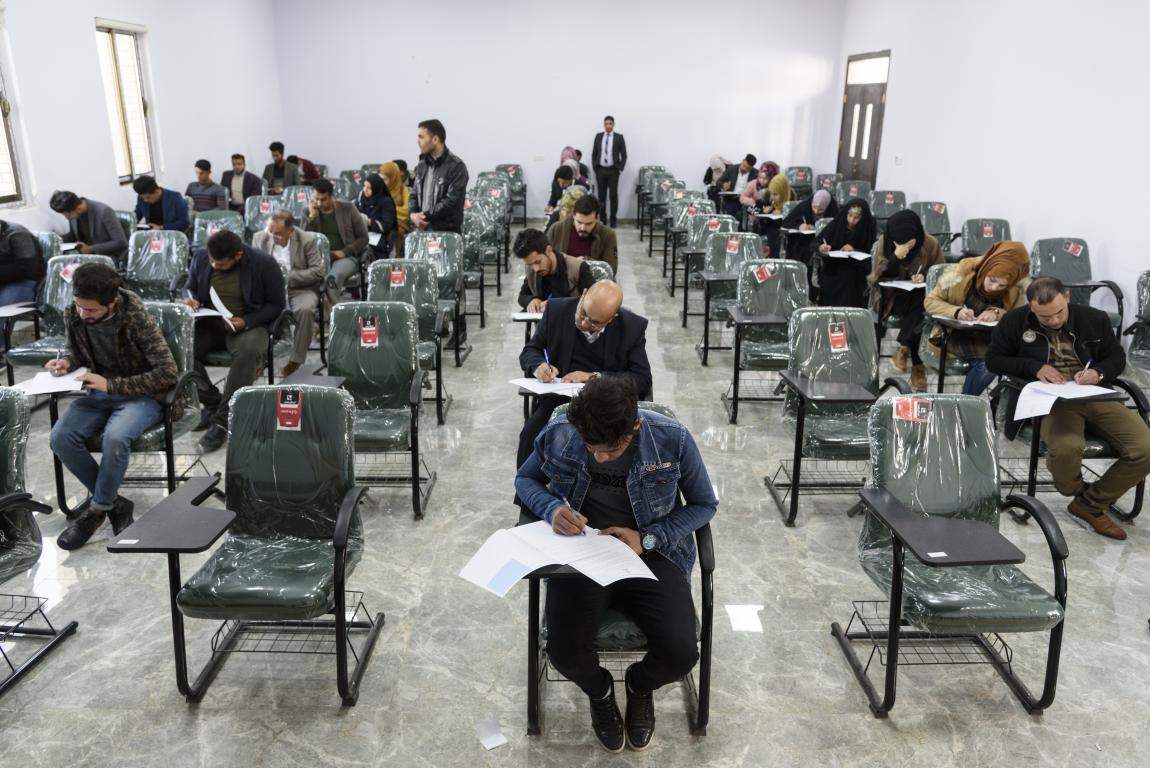 طلبة قسم هندسة تقنيات الروبوتات والذكاء الاصطناعي خلال تأدية امتحانات التقويم المستمر للفصل الدراسي الثاني.