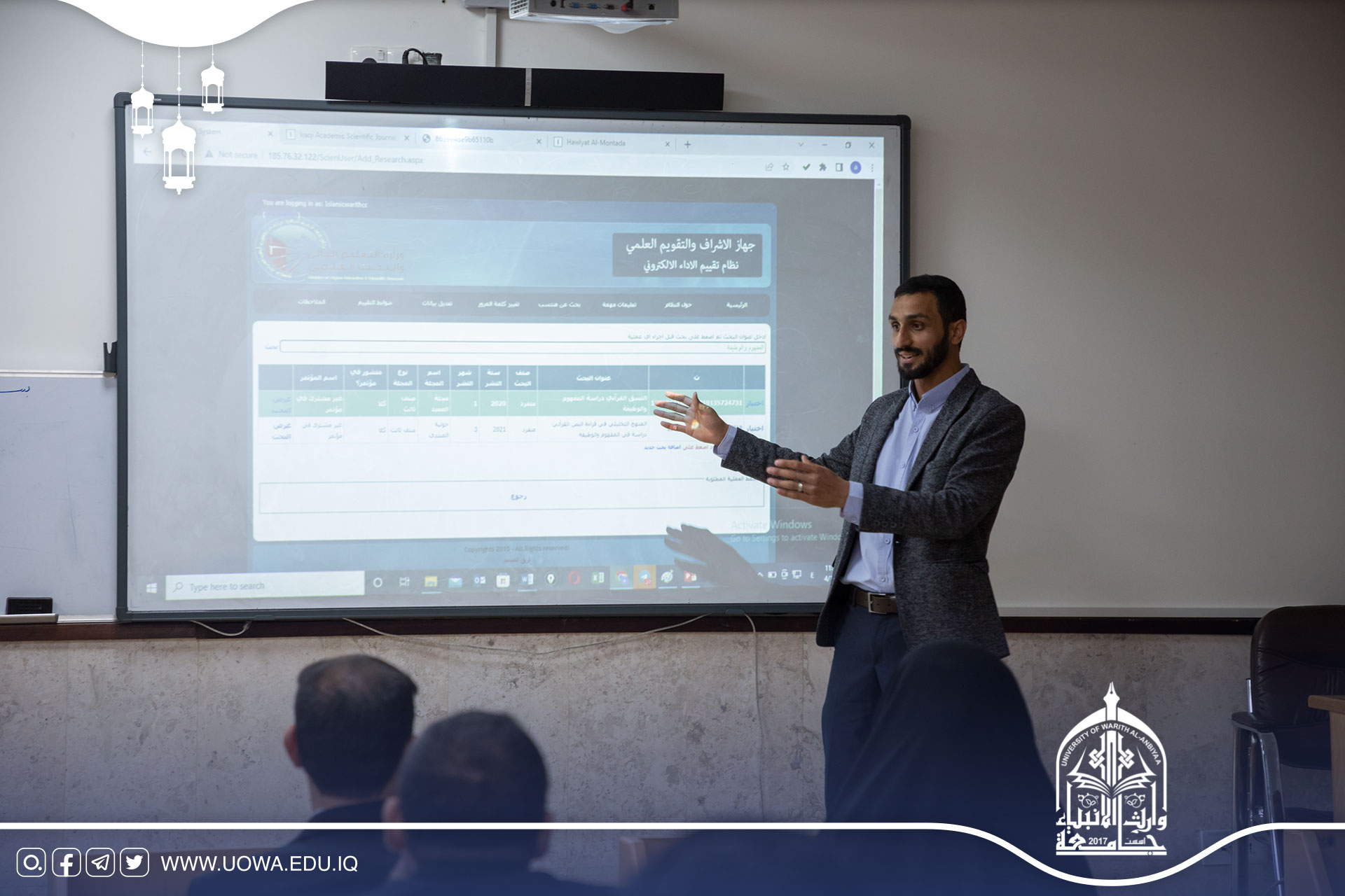 القاها م.م علي مهدي عبد علي (مسؤول تقييم الأداء الالكتروني ) و م.م غفران صلاح الدين مهدي مسؤولة التصنيفات العالمية.