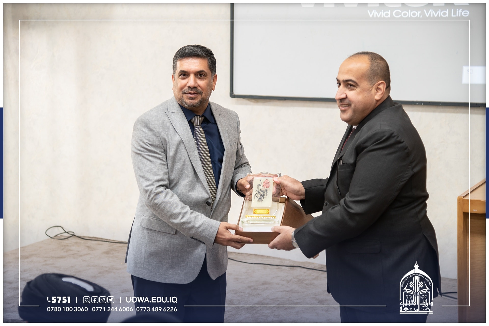وفي نهاية الحفل قدم السيد عميد كلية الهندسة الدكتور حسين العوادي درعً للسيد رئيس الجامعة عرفاناً لجهوده ودعمه المتواصل للفعاليات العلمية في الجامعة.