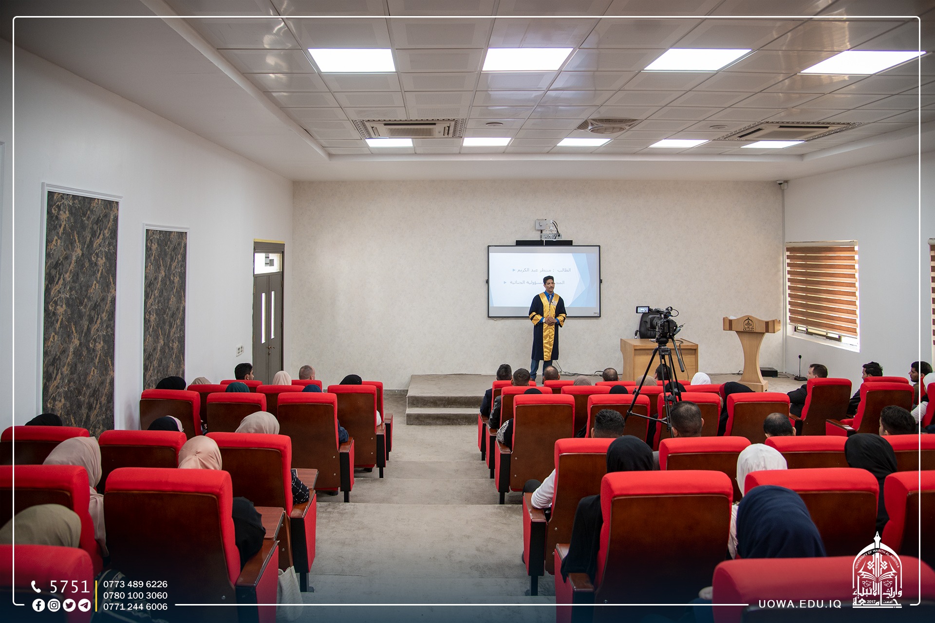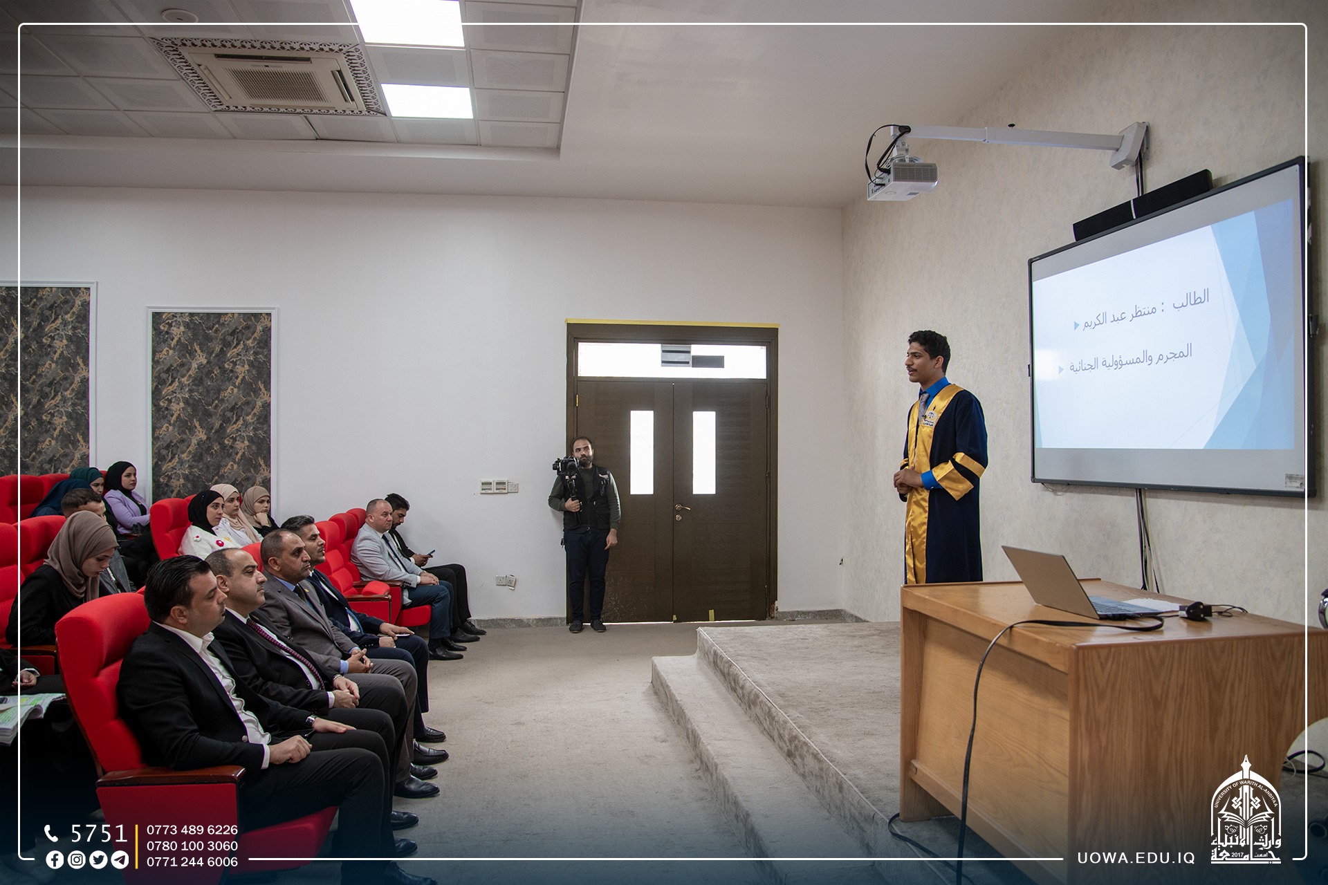 اقامت كلية القانون في جامعة وارث الأنبياء(عليه السلام) سلسلة من المحاضرات العلمية التي ألقاها عدد من طلبة المرحلة الثانية في الكلية، بهدف تهيئتهم وصقل مهاراتهم في إلقاء المحاضرات العلمية سعياً من عمادة الكلية لإعداد مشاريع أساتذة من الطلبة في المستقبل ،وتخريج طلبة أكفاء على جميع الصعد ومواكبة التطور العلمي بأوسع مجالته.