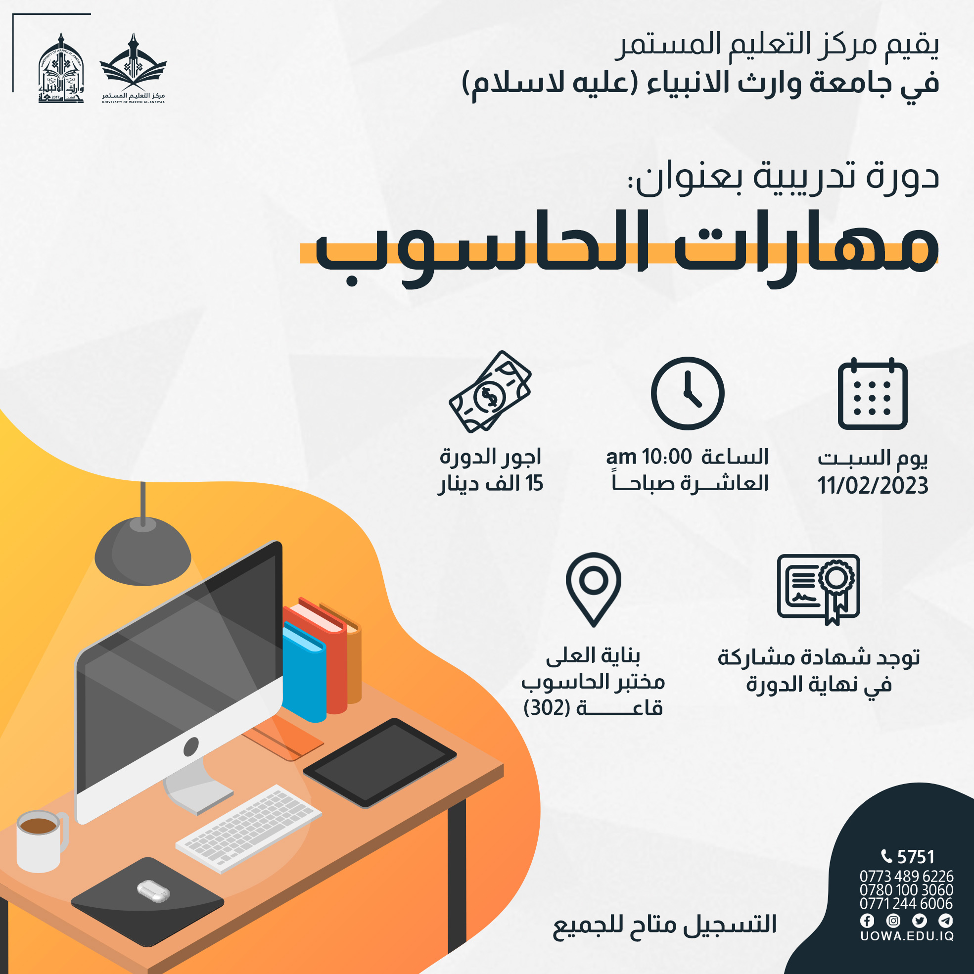 دروة تدريبية بعنوان "مهارات الحاسوب"