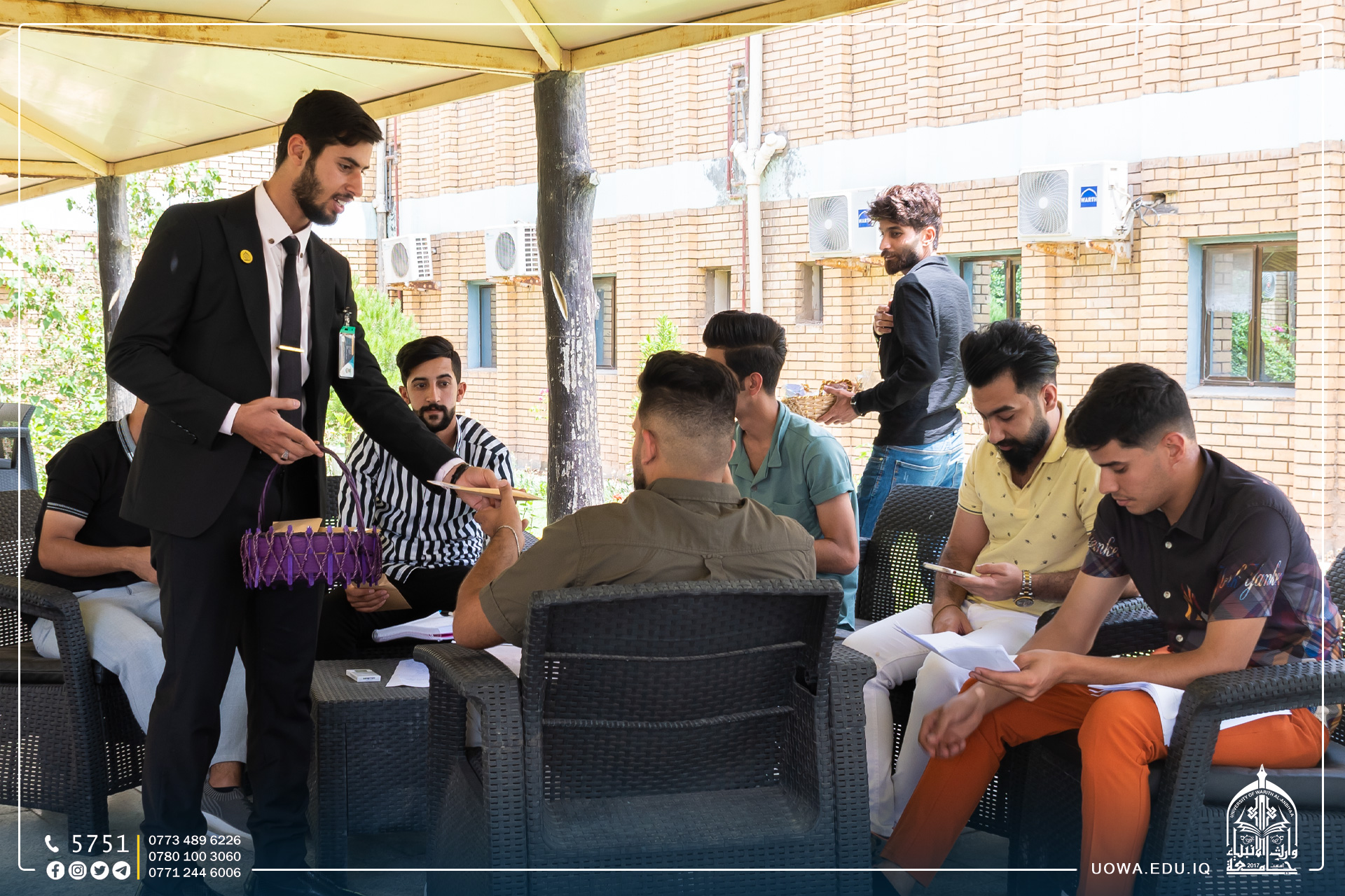 طلبة الجامعة يبادرون بتوزيع الحلوى والمنشورات التوعوية
