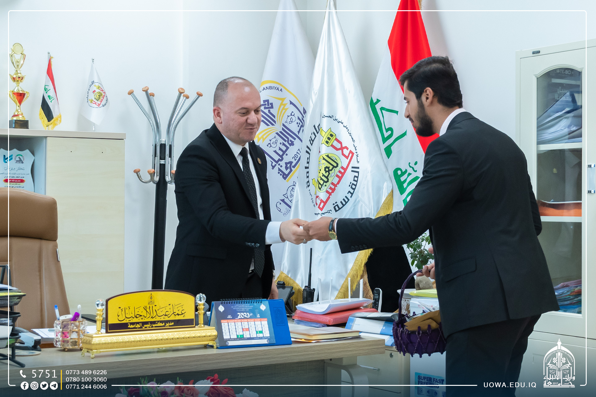 بادر عدد من طلبة جامعة وارث الانبياء(عليه السلام) بتوزيع الحلوى والمنشورات التوعوية بمناسبة حلول ذكرى ولادة الامام علي بن موسى الرضا(عليه السلام).