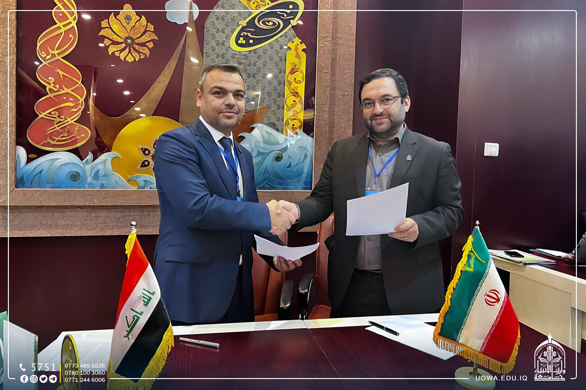 أبرم وفد جامعة وارث الانبياء(عليه السلام) الذي يترأسهُ المساعد العلمي الاستاذ الدكتور واقد الموسوي وعضوية رئيس قسم الاعلام والاتصال الحكومي الدكتور محمد جمال الطيف ، ضمن وفد وزارة التعليم العالي والبحث العلمي