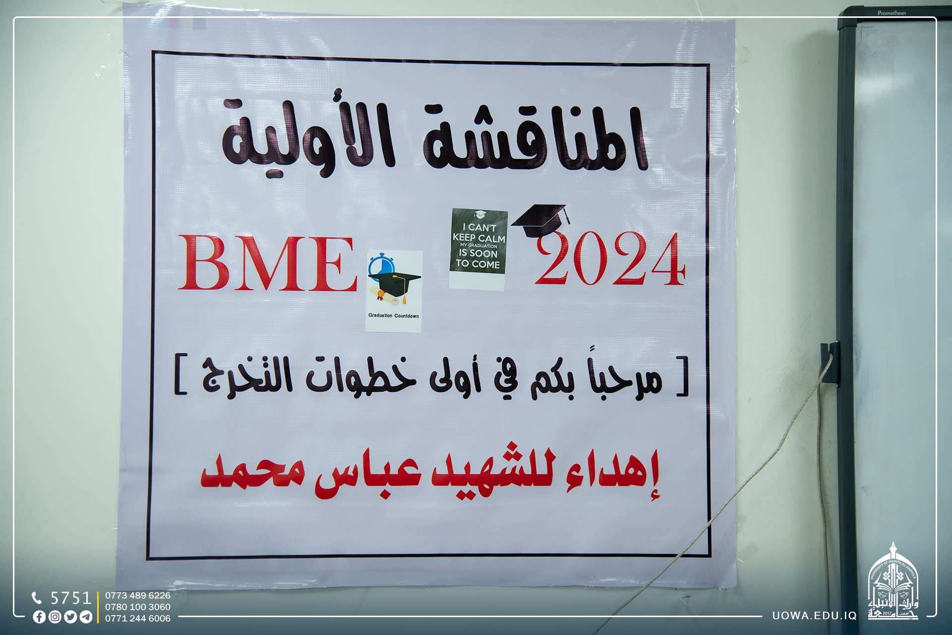 باشر قسم هندسة الطب الحياتي ، بإشراف لجنة علمية مشكلة من قبل رئاسة القسم المناقشات الاولية لمشاريع التخرج للطلبة