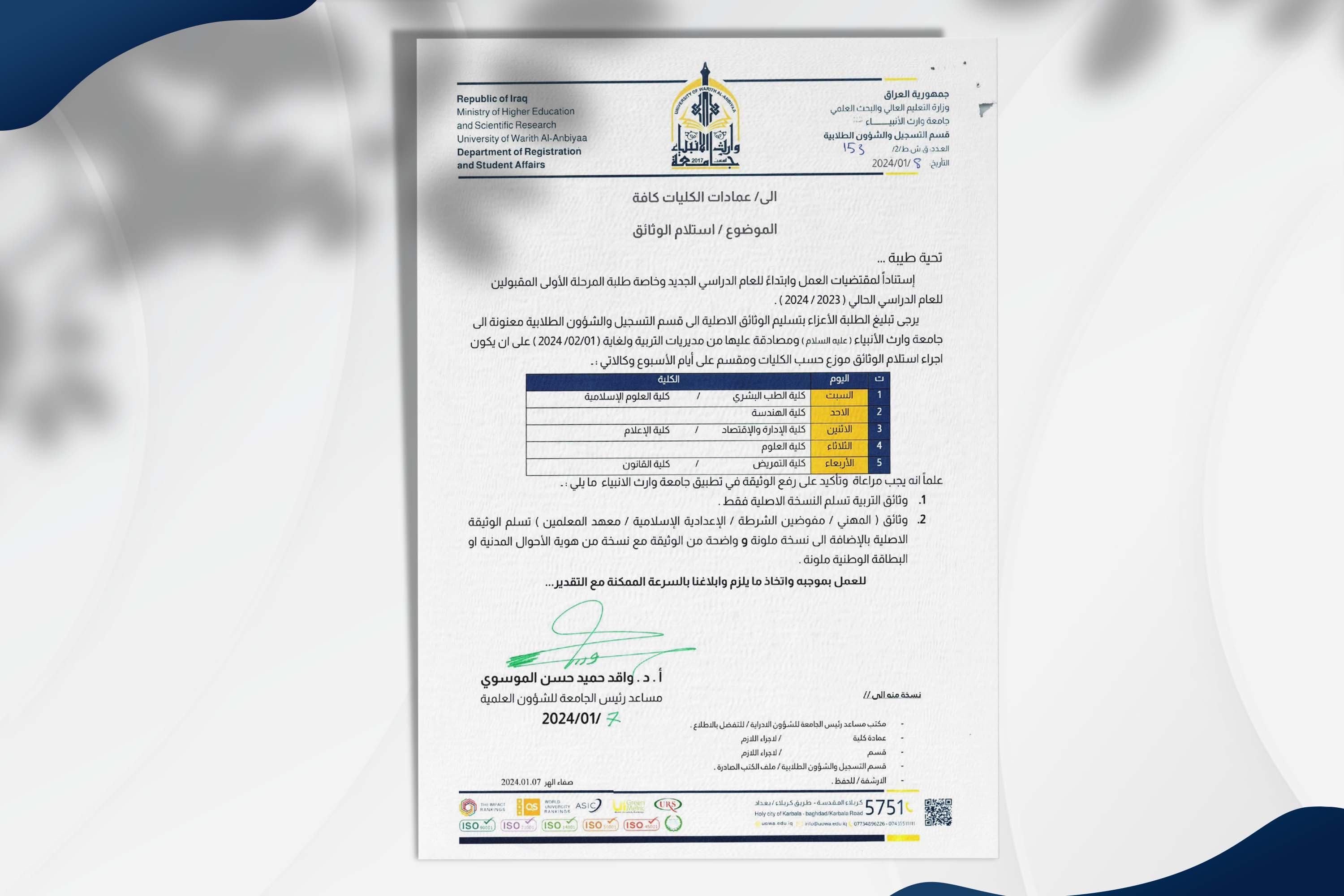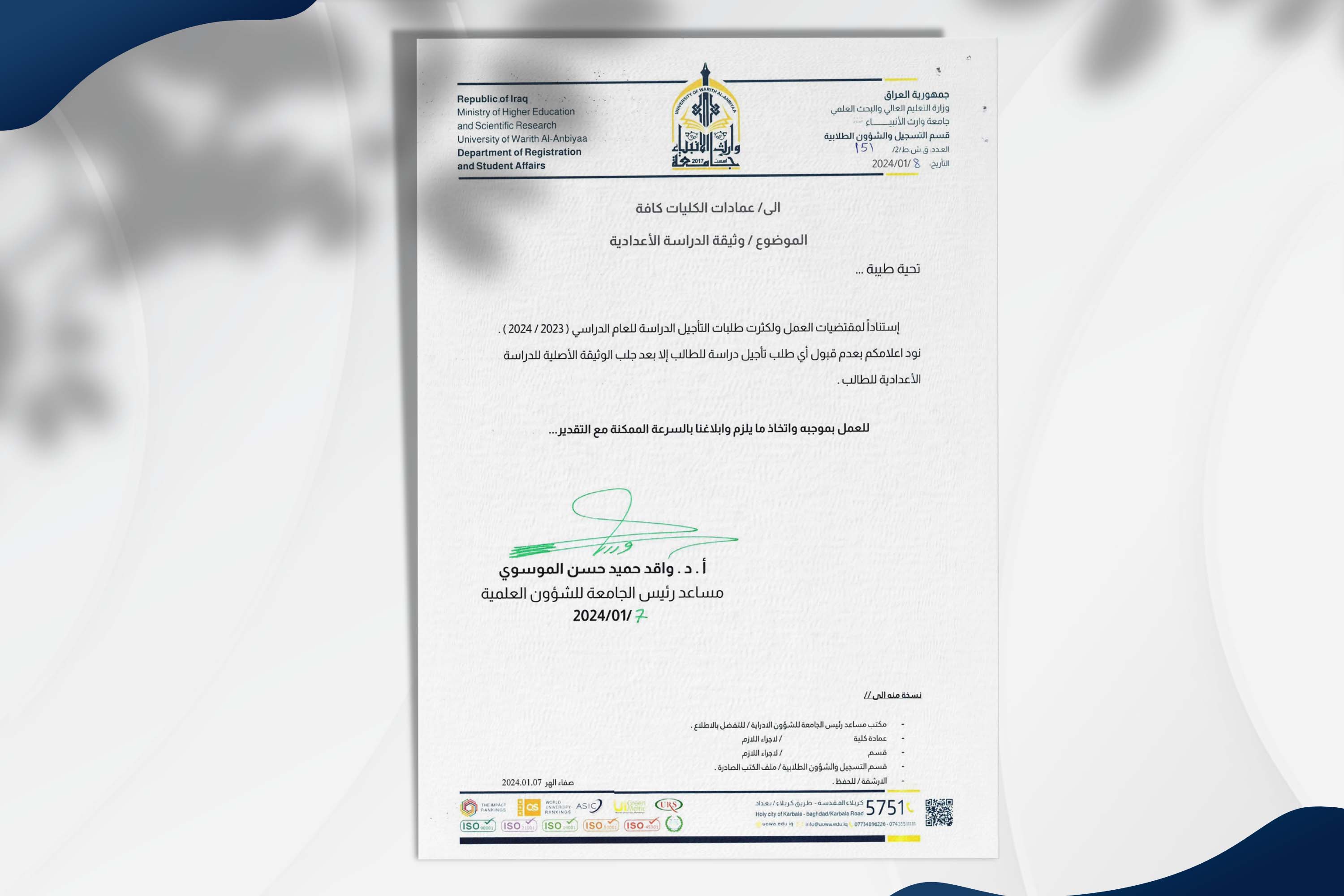 اعمام وثيقة الدراسة الإعدادية