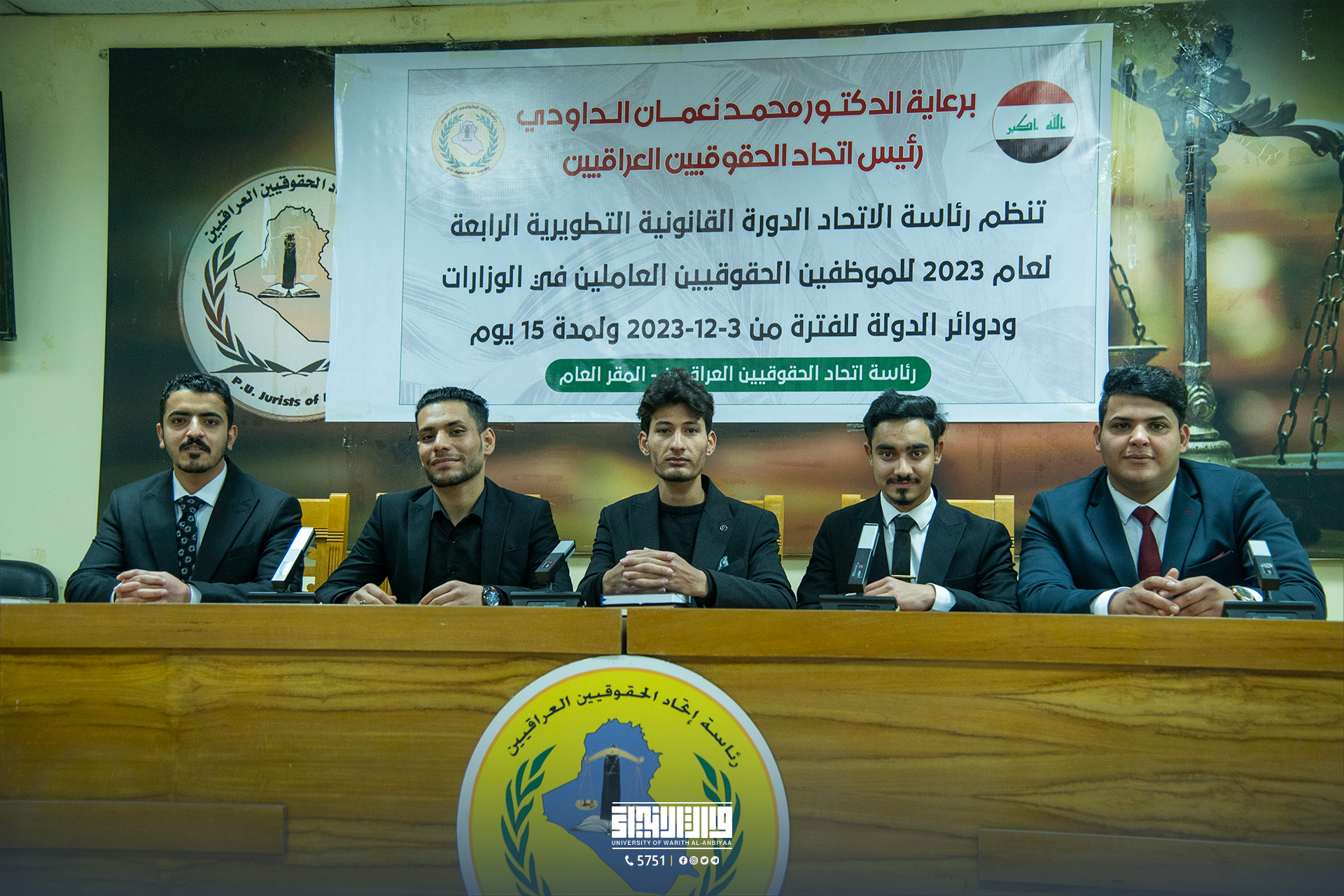 نظّمت كلية القانون في جامعة وارث الأنبياء (عليه السلام) رحلة علمية ممتعة لطلبتها بالتعاون مع أعضاء هيئة التدريس إلى مقر اتحاد الحقوقيين العراقيين في العاصمة بغداد. وصحب الطلاب والأساتذة رئيس الاتحاد، الدكتور محمد نعمان الداودي، في جولة داخل أروقة الاتحاد، حيث تعرّفوا على الأنشطة الفكرية والثقافية التي يضمها المقر.