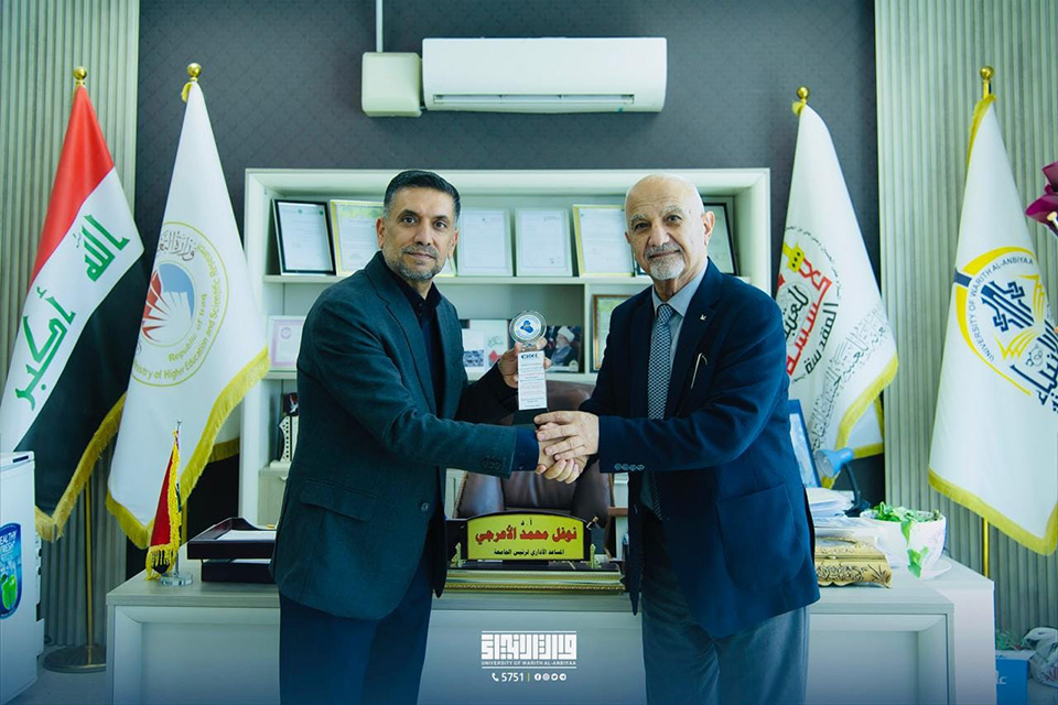 كرم السيد عميد كلية الهندسة الاستاذ المساعد الدكتور حسين هادي العوادي نيابة عن الجمعية الجيوتقنية العراقية السيد رئيس الجامعة الاستاذ الدكتور إبراهيم الحياوي والسيد المساعد الإداري ورئيس الهيئة المؤسسة الاستاذ الدكتور نوفل الاعرجي.