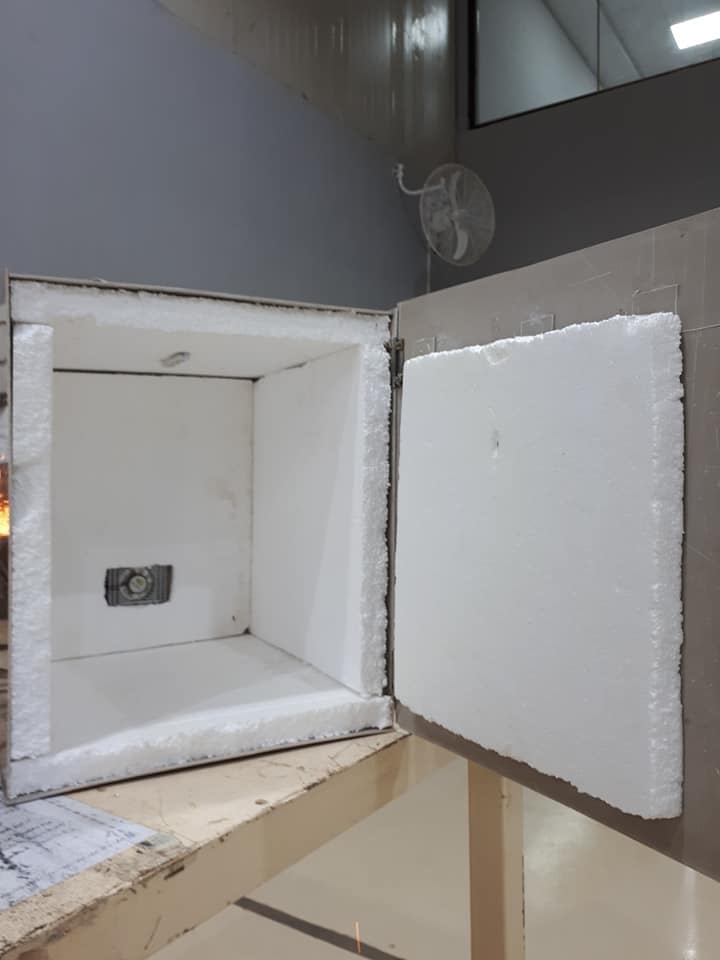 بإشراف السيد رئيس قسم هندسة التكييف والتبريد ومهندسي الورش الهندسية في جامعة وارث الانبياء(عليه السلام)صمم عدد من الطلبة المتفوقين في المرحلة الاولى في القسم المذكور ثلاجة مختبرية بالاعتماد على اجهزة ومكونات بسيطة ، الغرض منها الاثبات علمياً القدرة على سحب الحرارة من محيط داخلي وطرحه الى الخارج عن طريق مشتت حرارة ومروحة ومواد ماصة للحرارة ، حيث تم قياس درجة الحرارة وأخذ القراءات والنتائج وتحليلها رياضياً وفيزيائياً .
