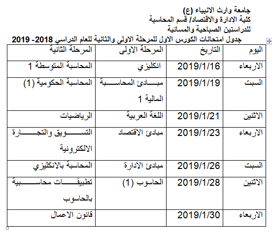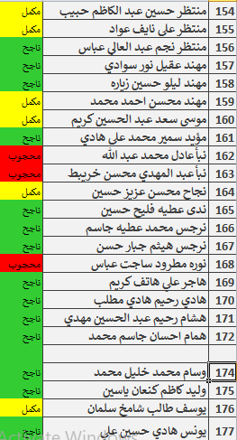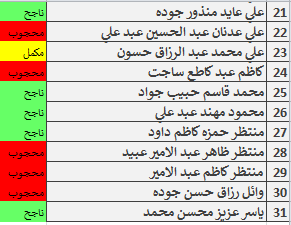 جدول اسماء الطلبة