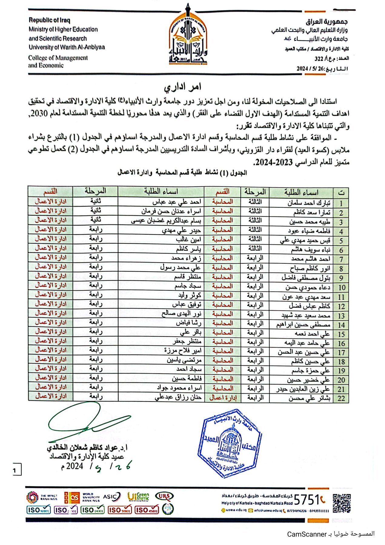 أقامت كلية الإدارة والاقتصاد، بمشاركة طلبتها، مبادرة تطوعية لشراء ملابس كسوة العيد للفقراء في دار القزويني، تعزيزًا لروح التكافل الاجتماعي ودعم المجتمع.