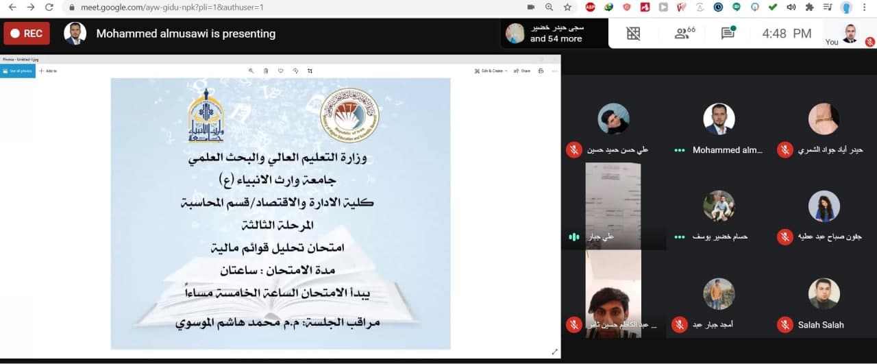 بإشراف مباشر من السيد عميد كلية الادارة والاقتصاد "أ.د.عوادالخالدي" والسادة رؤساء الاقسام (م.د.فهد الشمري/ رئيس قسم ادارة الاعمال و م.د.هبة الله مصطفى/ رئيس قسم المحاسبة)،