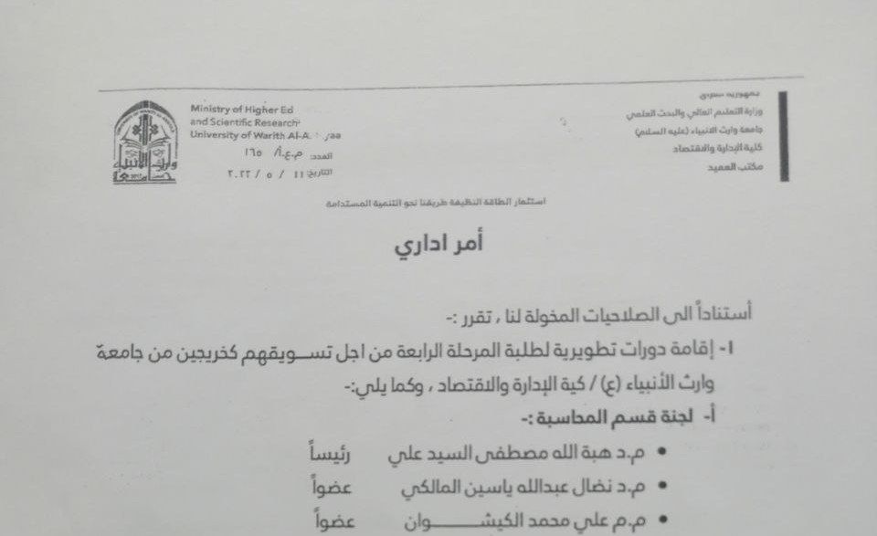 جامعة عراقية معترف بها من قبل وزارة التعليم العالي والبحث العلمي العراقي بموجب الامر الوزاري المرقم ( ت.أ / ك 4727 في سنة 2017)