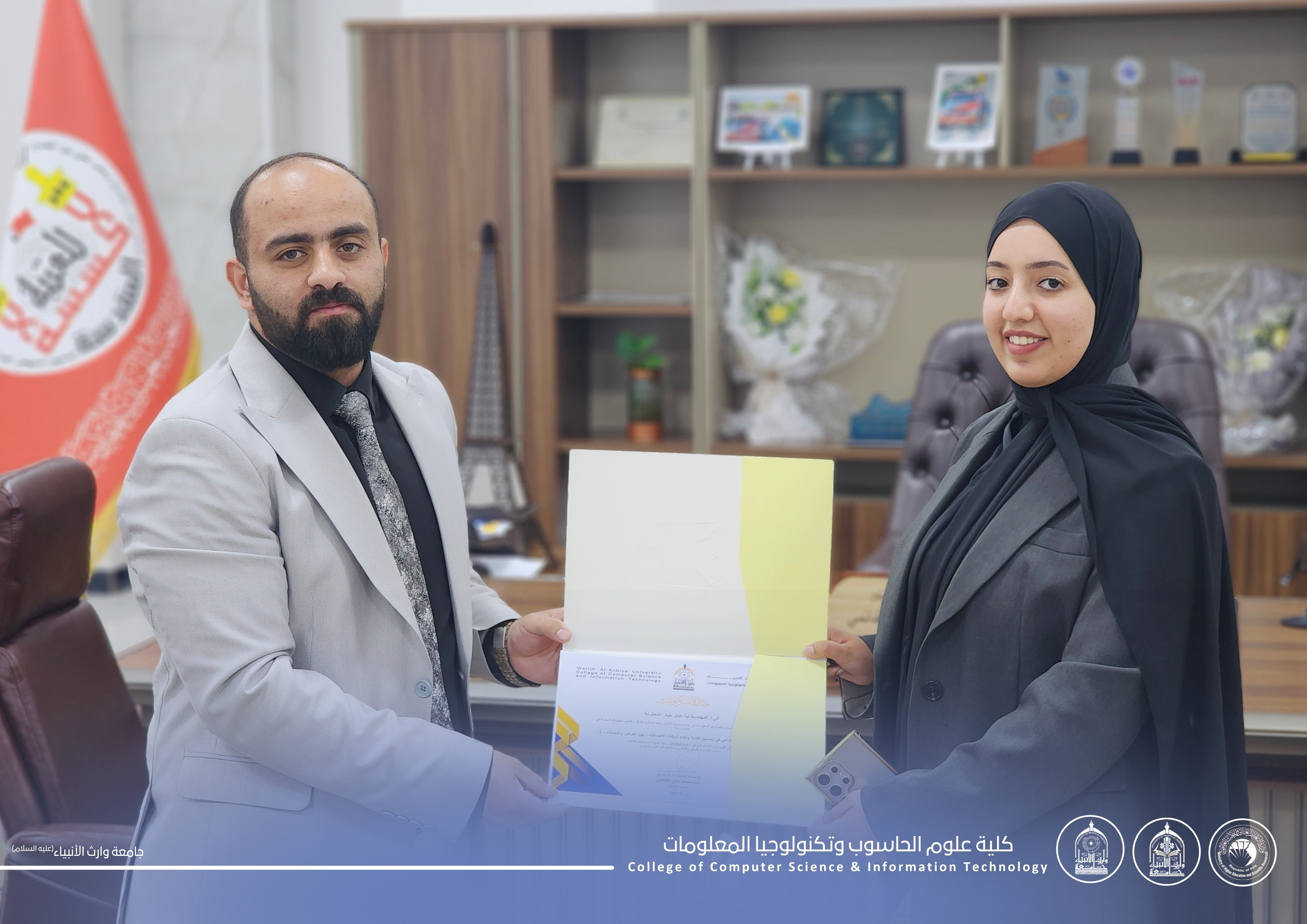 وفي ختام الورشة، قام م.م. علي محمود علي، مقرر قسم الذكاء الاصطناعي، بتكريم المحاضرين ومنحهم شهادات شكر وتقدير، تثمينًا لجهودهم القيّمة ومساهمتهم في إنجاح هذه الفعالية.