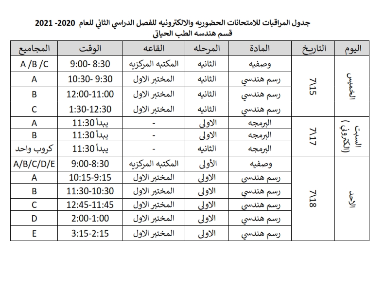 اليوم ٢٥ / ٧ / ٢٠٢١ أول يوم من الامتحانات الحضورية لقسم هندسة تقنيات التكييف والتبريد في جامعة وراث الأنبياء بأشراف مباشر على القاعات الدراسية من قبل السيد عميد كلية الهندسة والسيد رئيس القسم المحترمون حيث عبر الطلبة عن ارتياحهم لما توفره الجامعة من قاعات امتحانيه مبرده ومياه شرب بالإضافة إلى الالتزام بقواعد السلامة للوقاية من فيروس كورونا من خلال ارتداء الكمامات والتباعد واستخدام المعقمات.