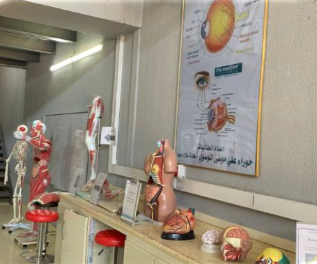 يختص بدراسة الجانب العملي لمادة التشريح و يتعرف الطالب في هذا المختبر على الأجزاء الطبيعية لجسم الإنسان و يعتمد في التدريب على الدمى  البلاستيكية المستوردة و يتوفر في المختبر اجزاء بلاستيكية لمختلف أجهزة الجسم.