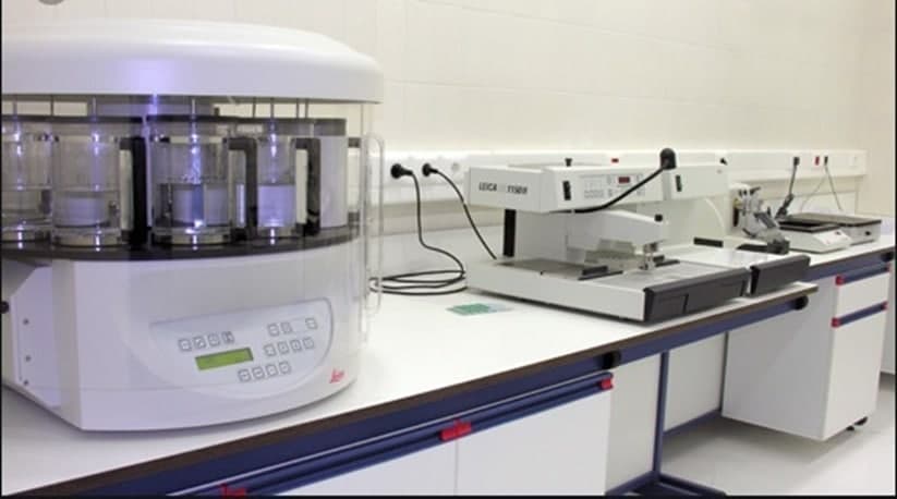 يعد مختبر الأنسجة من المختبرات المهمة في تدريب طلبة القسم من اعداد المقاطع النسيجية المصبوغة باستخدام أجهزة التقطيع النسيجي Microtome فضلا عن التدريب العملي على أعداد عينات بحثية مصبغة بالصبغات النسيجية المتعلقة بالأمراض النسيجية.
