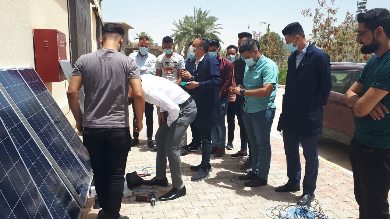 برعاية السيد المساعد العلمي لجامعة وارث الأنبياء وبأشراف مباشر من السيد عميد كُلْيَة الهندسة المحترم والسيد رئيس قسم هندسة تقنيات التكييف والتبريد أقيمت ورشة عملية في نصب منظومات شمسية وعلى مدى ثلاث أيام من قبل أساتذة قسم التكييف والتبريد وكادر شركة متخصص في هذا المجال وتستهدف هذه الورشة طلبة المرحلة الرابعة حيث يشمل البرنامَج التدريبي في اليوم الأول على التعرف على أنواع الخلايا الشمسية ومكونات المنظومات الشمسية وكيفية ربطها على التوالي والتوازي وقياس زاويه الأسقاط الشمسي وقياس كفائتها عند زوايا معينه وتأثير نسبه الظل على مقدار الفولتيه المتحققة وفي اليوم الثاني سيتدرب الطلبة على كيفية أجراء الصيانة على جهاز الانفيرتر والتعرف على طريقة عملة وكيفية استبدال القطع والعناصر التالفه فيه بوضع اخرى مشابه او مكافئة يتم استخراجها وفق جداول علمية أما اليوم الثالث سيتم تدريب الطلبة على كيفية اختيار النوع الملائم من المنظومات الشمسية لمشروع معين وكيفية تحديد معايير اختيار المنظومة المناسبة. ولله ولي التوفيق…