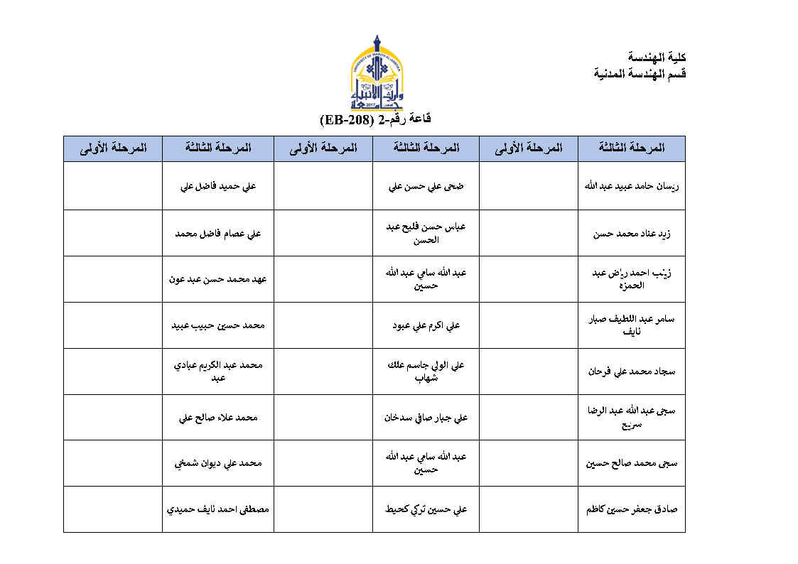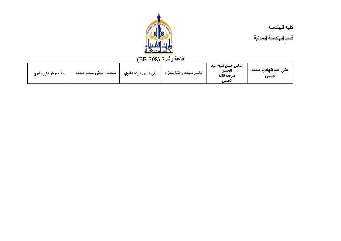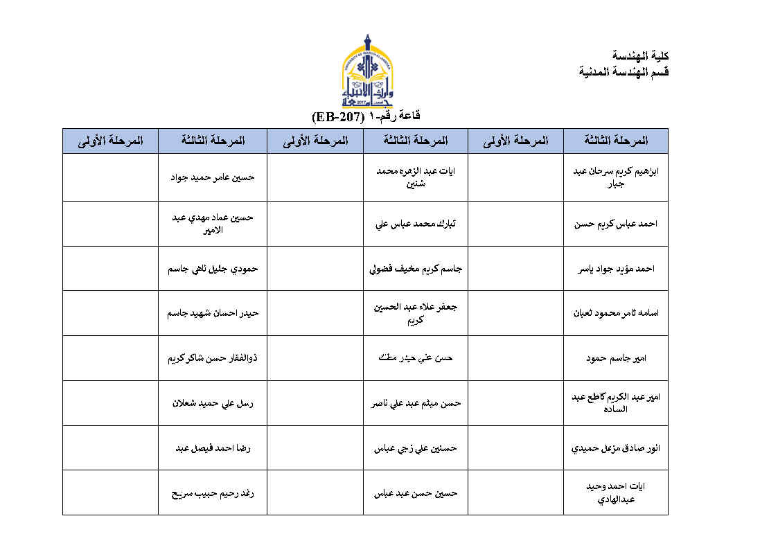 جدول امتحانات النهائية للفصل الاول لقسم الهندسة المدنية مع خارطة توزيع الطلاب في القاعات مع التعليمات