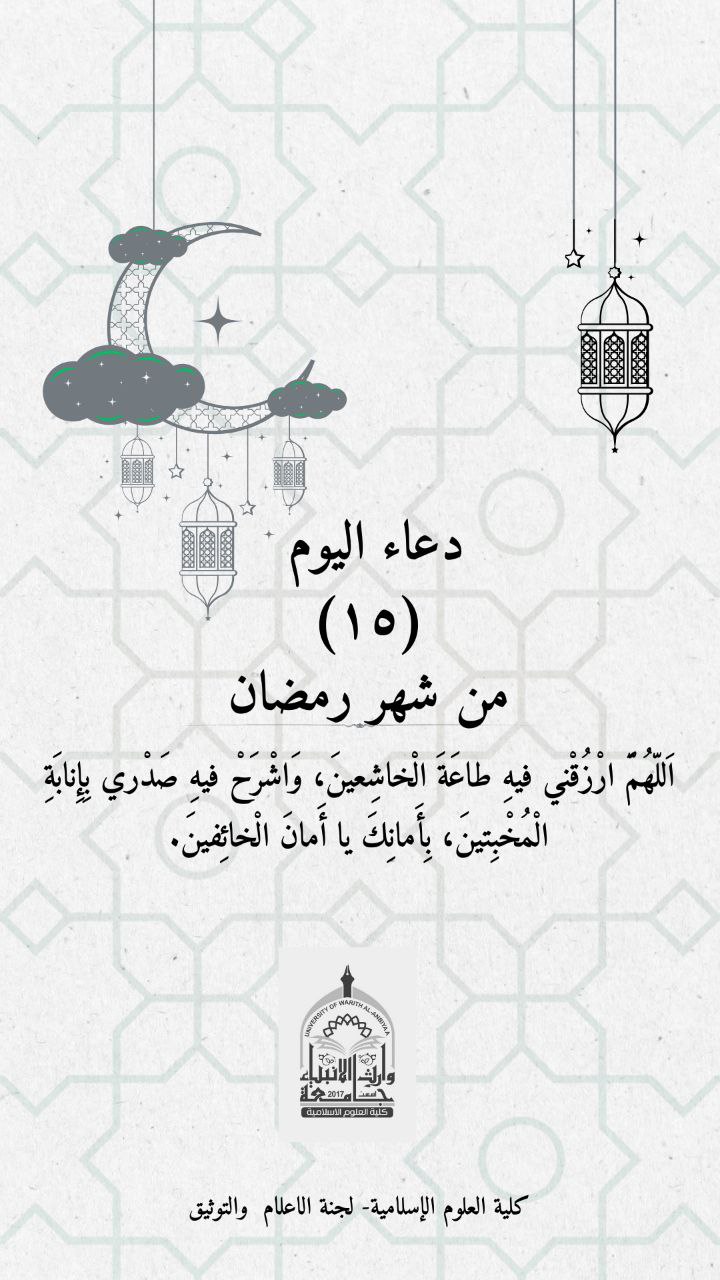 دعاء اليوم الخامس عشر من شهر رمضان المبارك