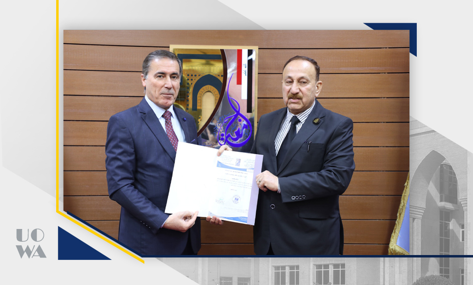 كلية الطب جامعة وارث الانبياء وفي تنفيذ اتفاقية التعاون العلمي ترسل الاستاذ الدكتور طالب جواد ( مدير وحدة الاعتماد في الكلية وعضو المجلس الوطني للاعتماد المؤسسي)  و بناءا على طلبهم ليحل ضيفا في مجلس جامعة ديالى الموقر ، ناقلا تحيات و تمنيات رئاسة جامعة وارث الانبياء و عمادة كلية الطب فيها،، وقد تم توضيح  و الاجابة على اسألة و استفسارات بعض اعضاء المجلس في جامعة ديالى حول الاعتماد المؤسسي ،،  وقد تم تقديم شرح وافي لبعض النقاط من قبله ، وقد اشاد  السيد رءيس جامعة ديالى والحاضرين على التعاون المتبادل بين الجامعتين و دعى إلى زيادة التواصل العلمي و الزيارات المتبادلة على مستوى الاساتذة او الطلبة ، وتمنى لجامعة وارث الانبياء دوام التوفيق والنجاح ،