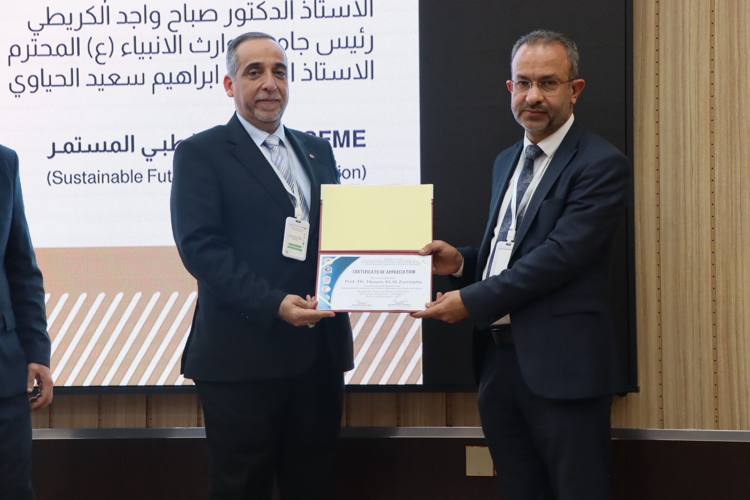 السيد رئيس جامعة كربلاء الأستاذ الدكتور صباح واجد الكريطي المحترم،والسيد رئيس جامعة وارث الأنبياء (ع) الأستاذ الدكتور إبراهيم سعيد الحياوي المحترم،اختُتمت على بركة الله أعمال المؤتمر الدولي للتعليم الطبي، والذي أُقيم تحت شعار: