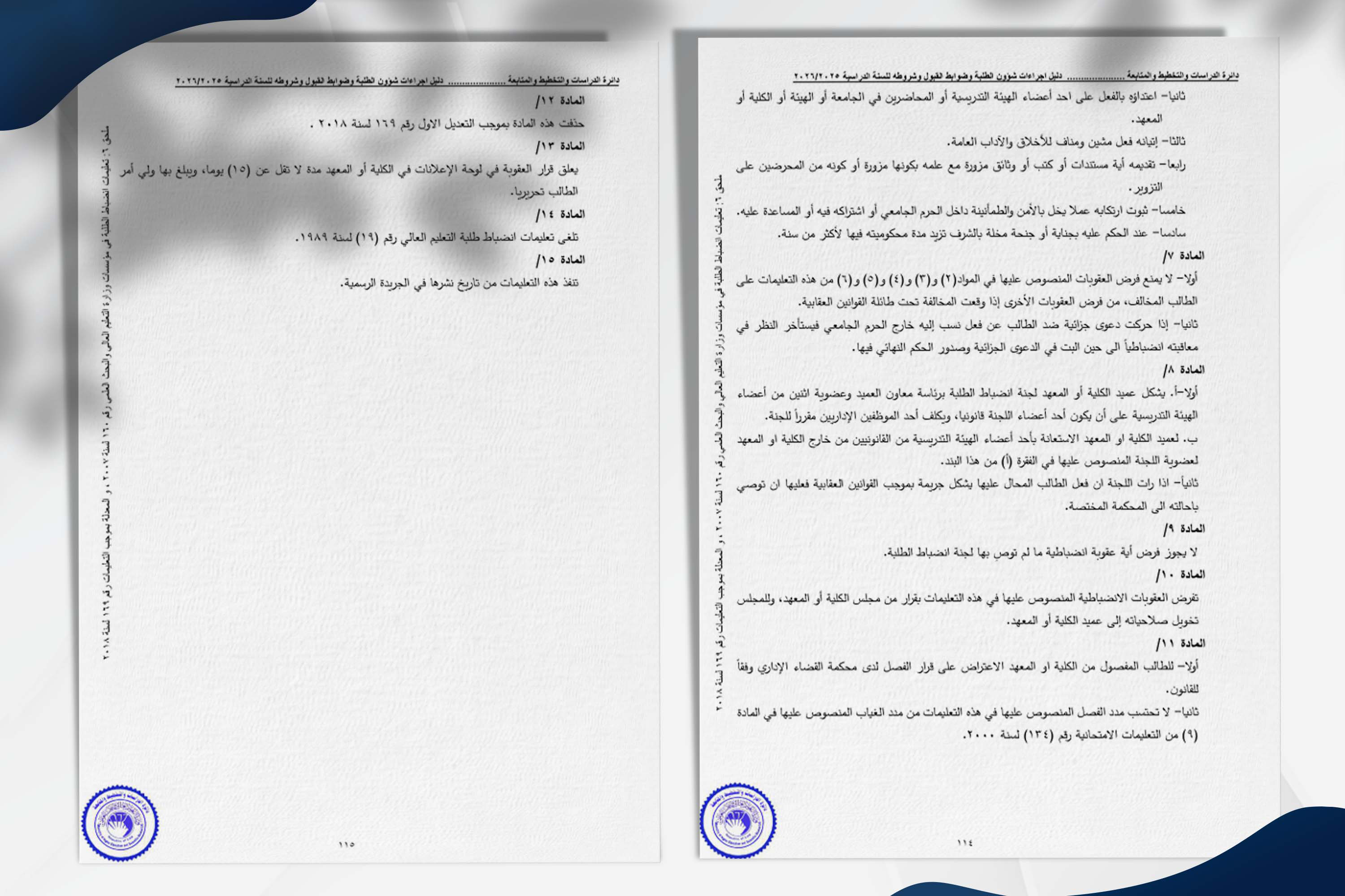 تعلن وزارة التعليم العالي والبحث العلمي إطلاق الدليل الإرشادي للتقديم وضوابط القبول إلى الجامعات والكليات الأهلية للعام 2026/2025.