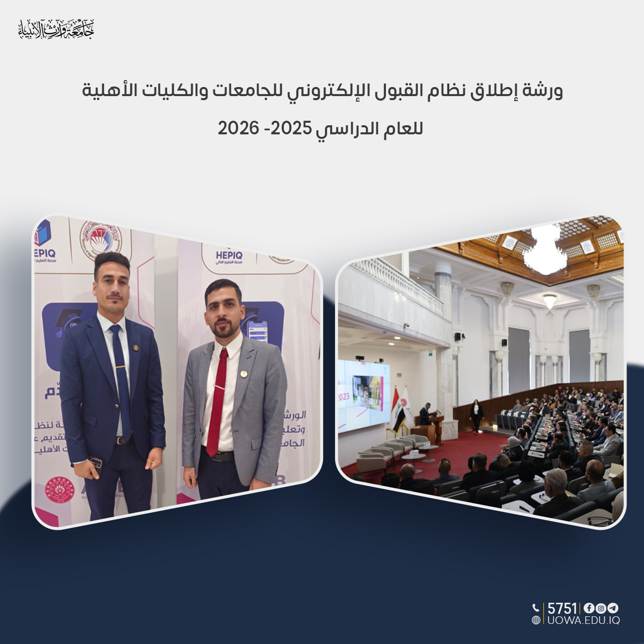 شارك رئيس قسم التسجيل والشؤون الطلابية السيد مؤيد سمير الخفاف وثلةٌ من موظفي القسم في الورشة التي أعدّتها وزارة التعليم العالي والبحث العلمي بشأن إطلاق نظام القبول الإلكتروني للجامعات والكليات الأهلية للعام الدراسي 2025-2026،تأتي هذه الورشة في إطار استعداد الوزارة لإطلاق دليل القبول الإلكتروني الجديد خلال الأيام القليلة المقبلة، تضمنت الورشة استعراضا لأبرز التطورات والاستحداثات الخاصة بآلية التقديم للعام الدراسي القادم كما أشار القائمون على الورشة إلى أن تعليمات القبول ستعتمد إلى حدّ كبير على تعليمات العام الماضي، مع إدخال بعض التعديلات التي تهدف إلى تنويع آلية التقديم وتحقيق الشفافية والدقة في القبول. ومن بين أهم التحديثات التي تم الإعلان عنها إضافة فئة الطلبة المتميزين ضمن فئات التقديم الجديدة، بما يضمن توسيع فرص القبول واستثمار الطاقات الأكاديمية المتميزة في المؤسسات التعليمية الأهلية.وتأتي مشاركة قسم التسجيل في هذه الورشة حرصًا على مواكبة المستجدات التقنية في أنظمة القبول، بما يسهم في تقديم خدمات التسجيل الفعّالة وسلسة للطلبة المتقدمين للعام الدراسي الجديد .