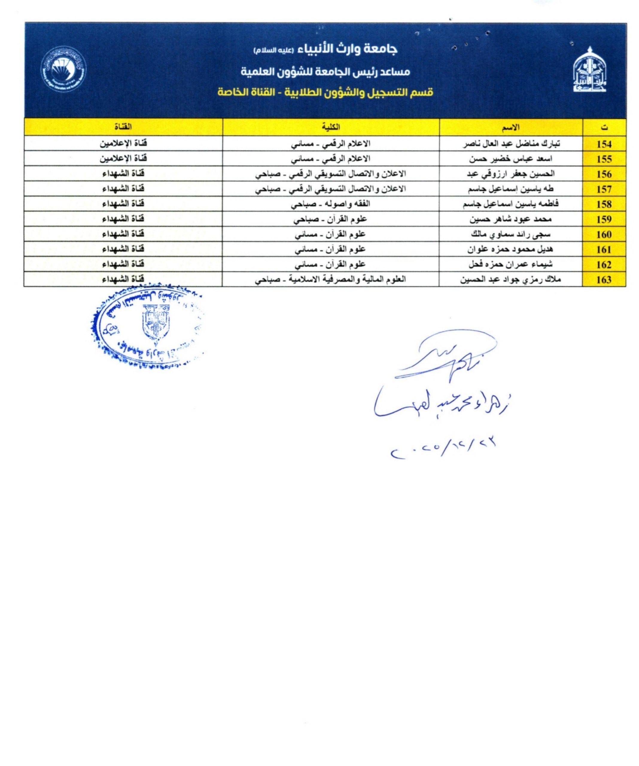 الطلبة الأعزاء المدرجة أسماؤهم ضمن القوائم القبول في