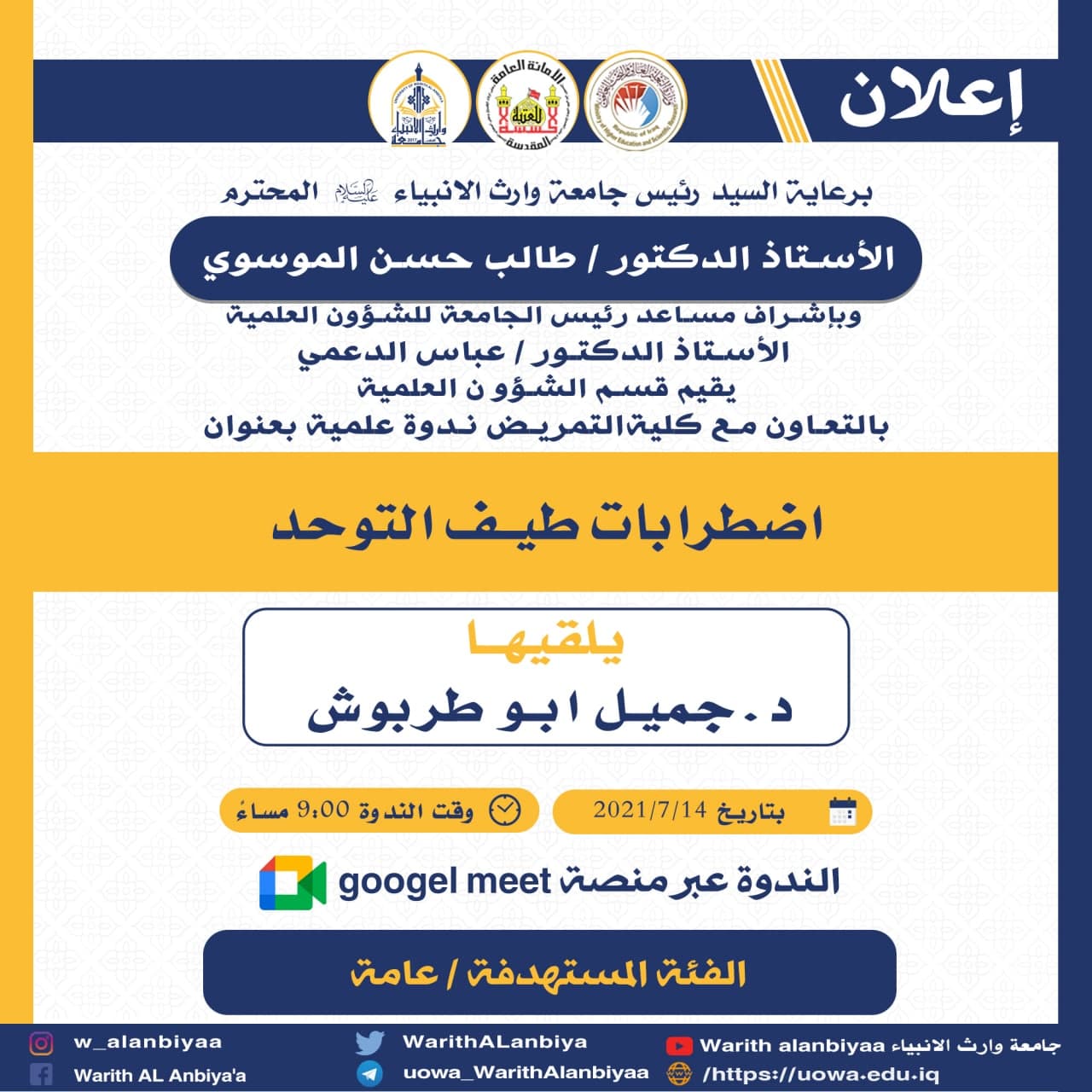 (التعلم المحاسبي في ظل جائحة كورونا)بورشة علمية في جامعة وارث الانبياء (عليه السلام)