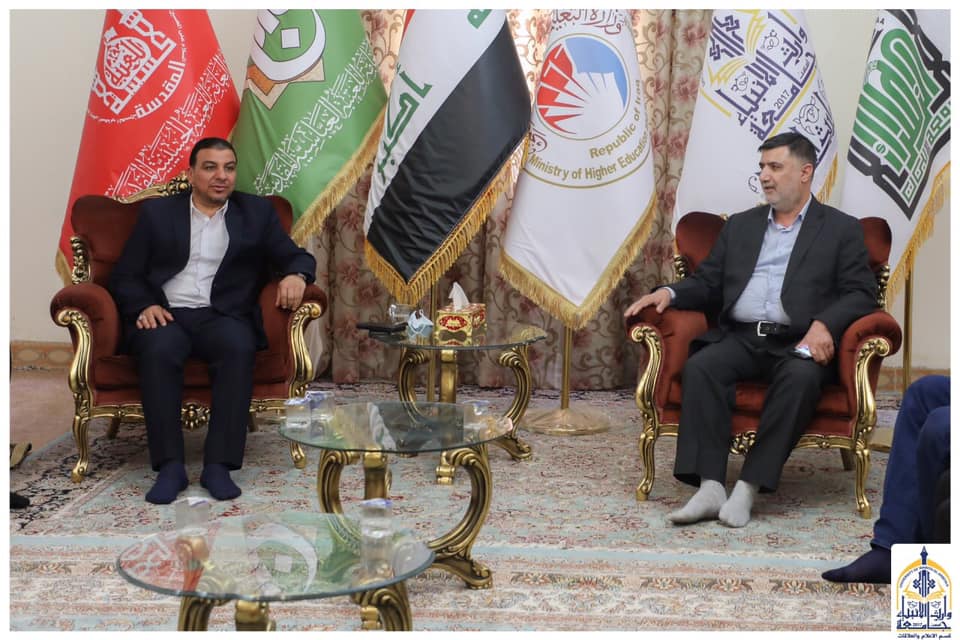 زار وفد من اتحاد الصحفيين العراقيين فرع النجف الأشرف جامعة وارث الانبياء(عليه السلام) لفتح آفاق التعاون بين الطرفين ، وكان باستقبال الوفد السيد رئيس قسم التعليم العالي في العتبة الحسينية المقدسة الدكتور افضل الشامي .وفي لقاء مع رئيس الوفد الدكتور حمودي العيساوي رئيس اتحاد الصحفييين فرع النجف الاشرف تحدث لنا قائلاً: جئنا بزيارة الى جامعة وارث الانبياء(عليه السلام) هذا الصرح العلمي الجميل والمميز ونحن نأمل ان يكون هناك تعاون فيما بيننا لطموحنا في الخوض في العملية التعليمة ، كما طلبنا من رئاسة الجامعة ان يتم استحداث دراسات عليا فيها .