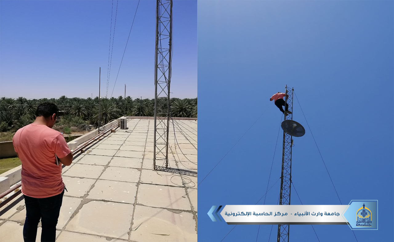 بالتنسيق مع شعبة الصيانة و الشبكات داخل الجامعة تمت معاينة موقع برج الانترنت للجامعة وبالتعاون مع إحدى الشركات المتخصصة لتحديد موقع برج الجامعة وبعده عن أقرب برج للشركة لربطه بواسطة لنك خاص .