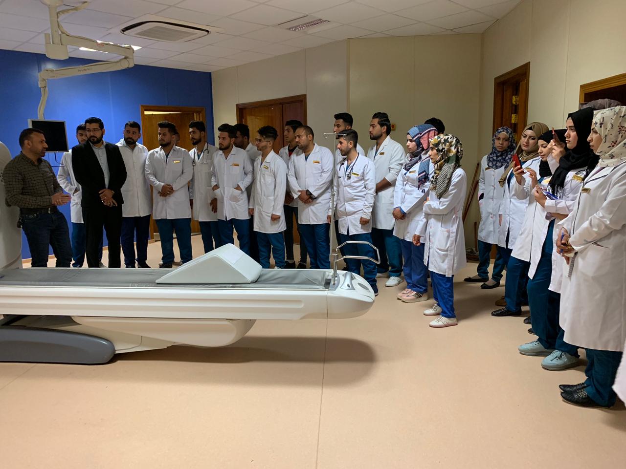 حيث كان باستقبالنا قسم العلاقات و الاعلام في المستشفى و مرافقة الوفد في جميع مرافق المستشفى حتى نهاية الزيارة و العودة الى الجامعة