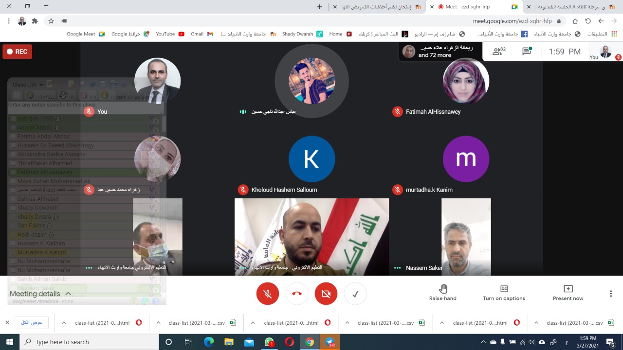زار الفريق الوزاري القاعات الالكترونية لكلية التمريض للاطلاع على سير الامتحانات حيث رافق الفريق الكترونيا السيد مساعد رئيس الجامعة للشؤون العلمية الدكتور عباس الدعمي والدكتور حيدر الغانمي مسؤول شعبة التعليم الالكتروني حيث اشاد الفريق بالتنظيم العالي في اجراء الامتحانات الالكترونية لطلبة الكلية.