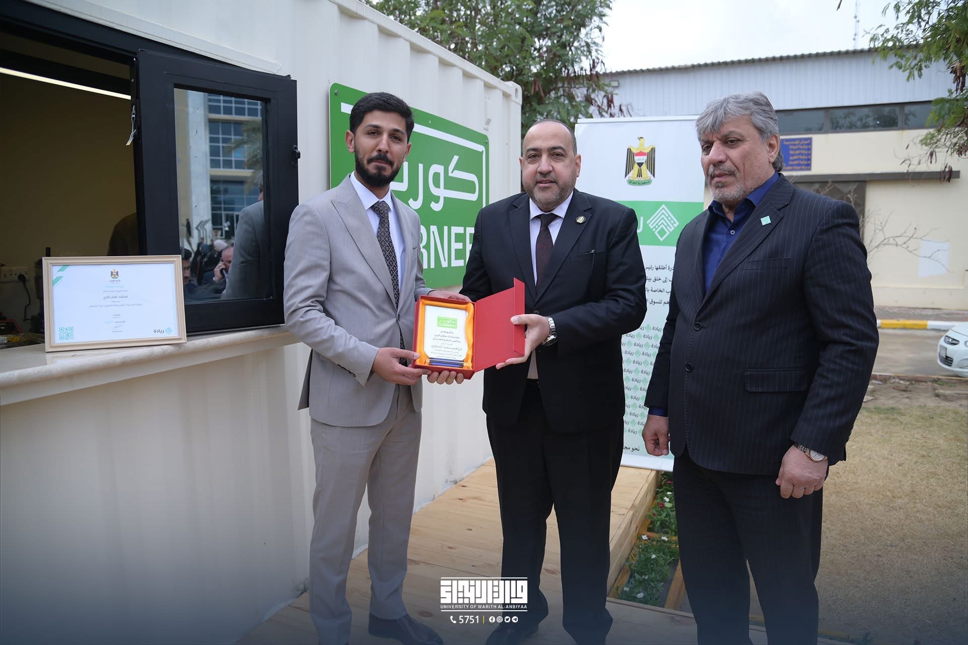 جولة ميدانية لمسؤول مبادرة ريادة في مجلس الوزراء ورئيس جامعة وارث الأنبياء للاطلاع على مشروع ريادي مبتكر أجرى الدكتور حسين فلامرز، مسؤول مبادرة ريادة في مجلس الوزراء، برفقة الأستاذ الدكتور إبراهيم سعيد الحياوي، رئيس جامعة وارث الأنبياء (عليه السلام)، جولة ميدانية للاطلاع على مشروع "الكورنر"، الذي أسسه خريج قسم هندسة الطب الحياتي محمد عمار.