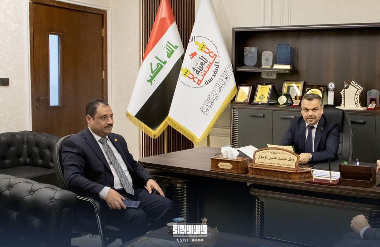 استقبل المساعد العلمي في جامعة وارث الأنبياء الأستاذ الدكتور واقد الموسوي، عميد كلية الهندسة بجامعة كربلاء الأستاذ الدكتور حيدر ناظم المحنة، لبحث سبل تفعيل اتفاقية التعاون الأكاديمي بين الجامعتين.