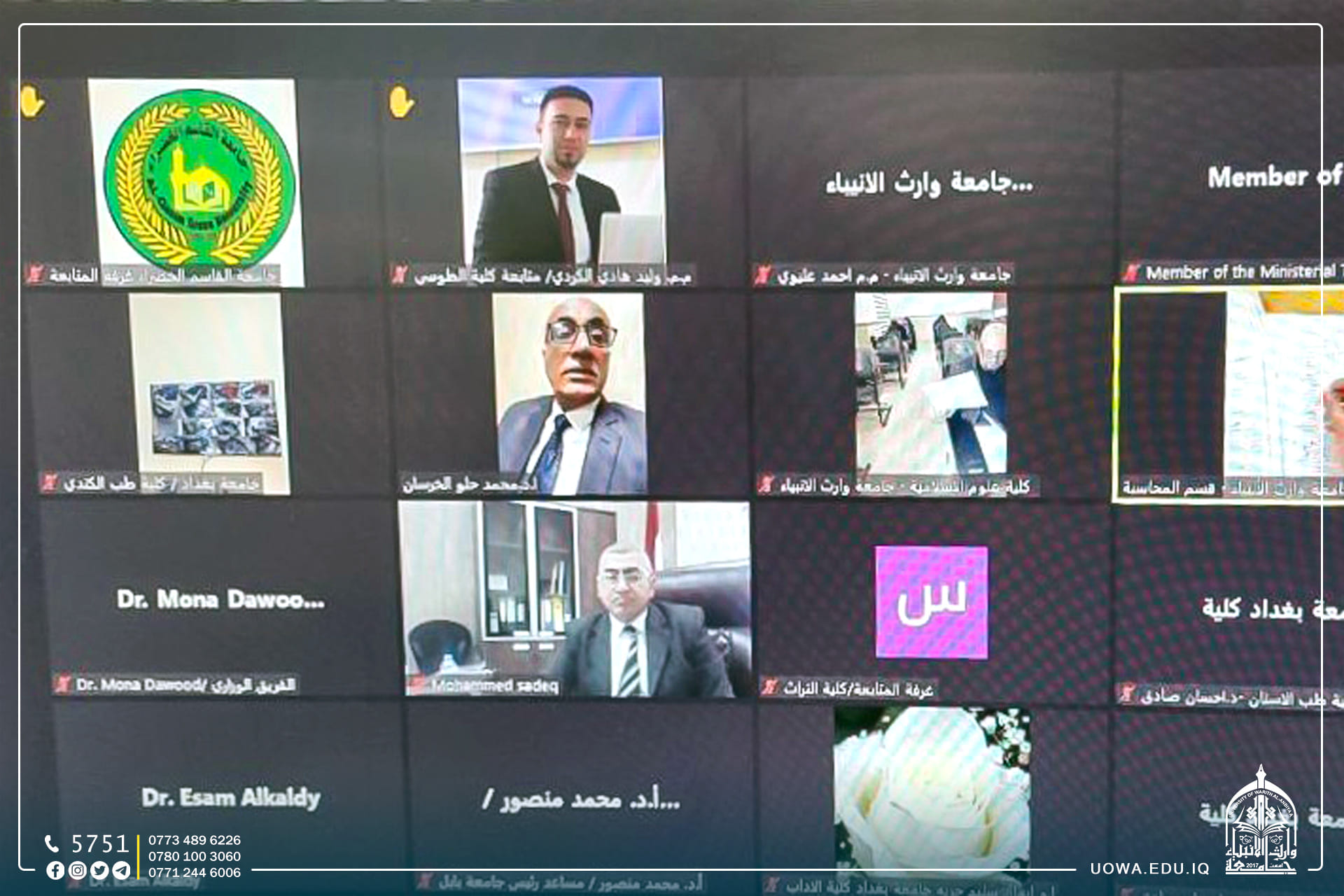 اطلع فريق "جهاز الاشراف والتقويم العلمي" الالكتروني على سير امتحانات الفصل الاول في كليات واقسام الجامعة، اذ التقى الوفد( عبر منصة الزووم) بالسيد المساعد العلمي الاستاذ الدكتور عباس الدعمي، والسيد مدير مركز التعليم المستمر الدكتور حيدر الغانمي الذي تحدث قائلاً: بمشاركة 1290 طالب وطالبة في امتحانات هذا اليوم تفقد الفريق الوزاري القاعات الامتحانية، واللجان الامتحانية، وابدى ارتياحه واعجابه الكبير لما وفرته الجامعة من امكانيات علمية لانجاح الامتحانات الفصلية.