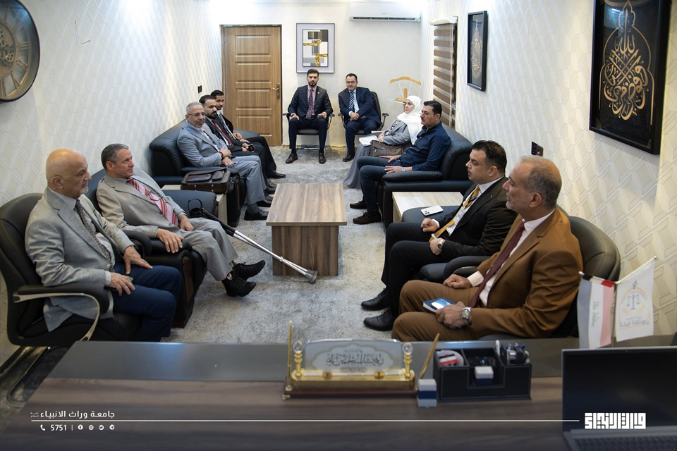 The President of the University of Warith Al-Anbiyaa, Professor Dr. Ibrahim Saeed Al-Hayyawi, received the National Program Accreditation Team during their visit to the College of Law as part of the academic accreditation procedures for the Law Program under the supervision of the Ministry of Higher Education and Scientific Research.