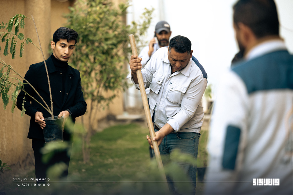 The College of Engineering and the College of Science at Warith Al-Anbiyaa University (peace be upon him), in cooperation with the Department of Diwan Affairs / Agricultural Unit, implemented a tree-planting campaign across the university campus to enhance green spaces and promote environmental awareness among students and staff.