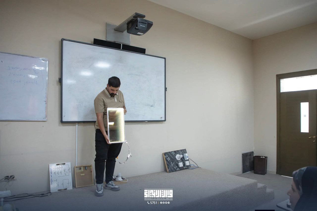 In the presence of the University President, Prof. Dr. Ibrahim Al-Hayawi, the Scientific Assistant, Prof. Dr. Waqid Al-Mousawi, and the Dean of the Faculty of Science, Dr. Shaimaa Hussein Nawfal, first-year students of the Department of Medical Physics organized a series of seminars and practical experiments in groups. These activities aimed to foster the development of their scientific ideas and enhance their knowledge, reflecting the Faculty’s vision of enabling students to effectively link theoretical knowledge with practical application.