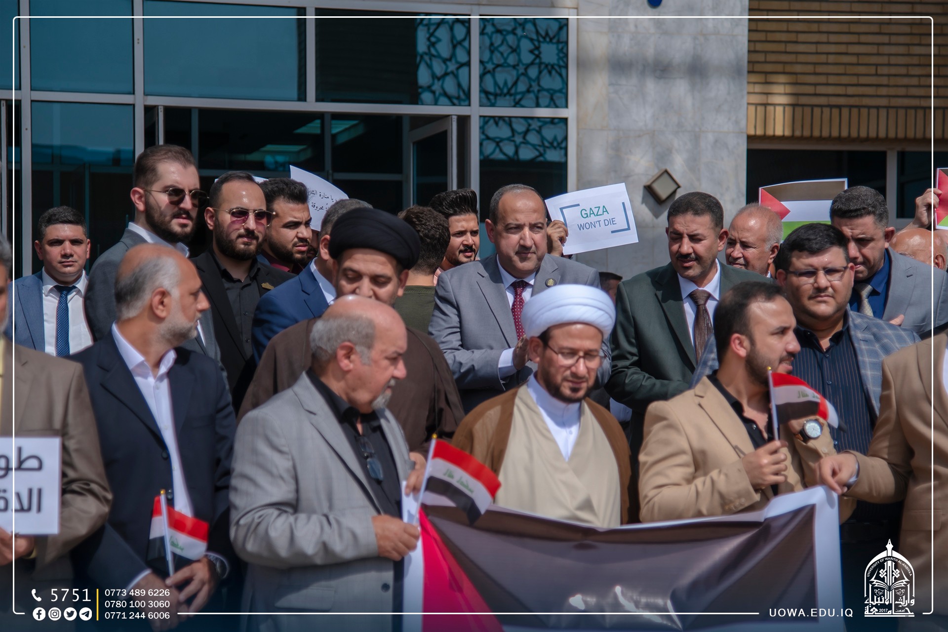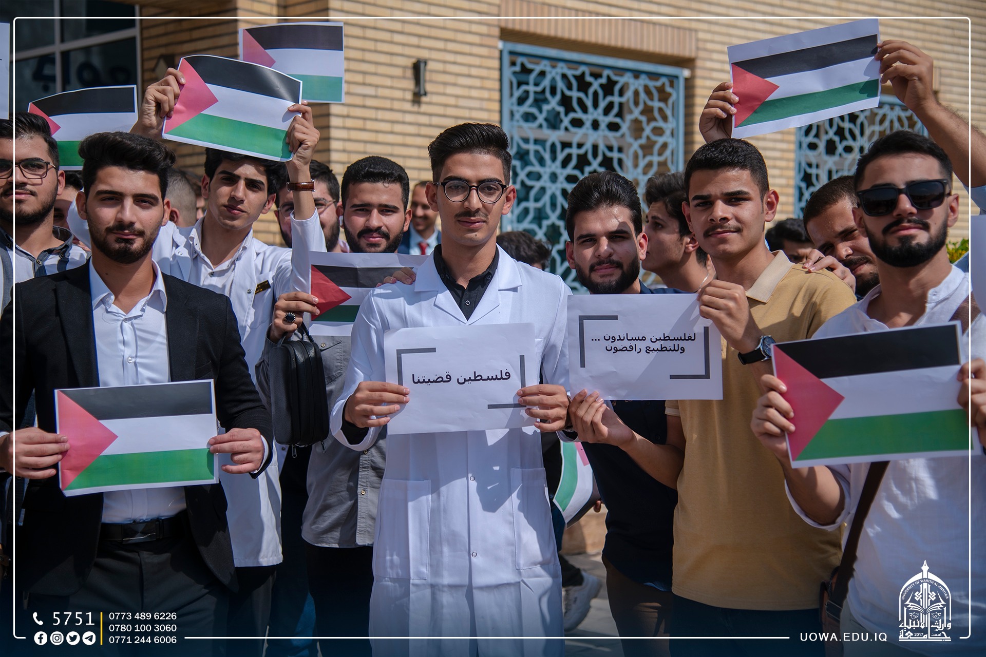 The University of Warith Al-Anbiyaa (peace be upon him) organizes a solidarity stand with the Palestinian people and reaffirms its support for the brave Palestinian people in their resistance against the occupiers. The whole world is called upon to stand against this terrible brutality and prevent the Israeli forces from executing their plans to cause more harm to the oppressed Palestinian people. All of this is happening in full view and hearing of the entire world, with no deterrent or hindrance. There are even those who support these criminal acts under the pretext of self-defense. We ask Allah to assist them and grant them victory, for victory comes only from Allah, the Mighty, the Wise.