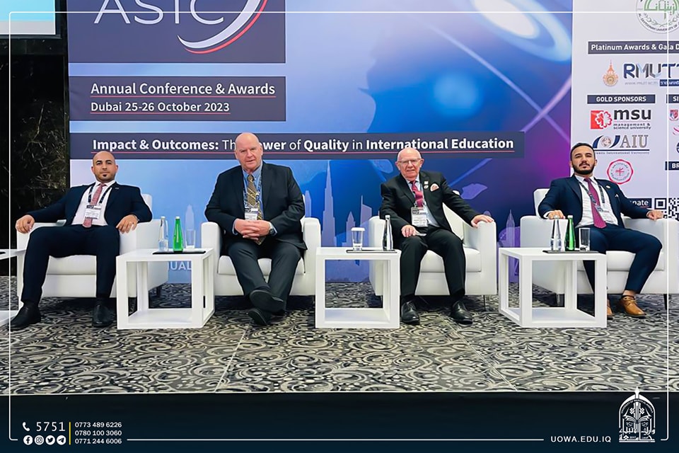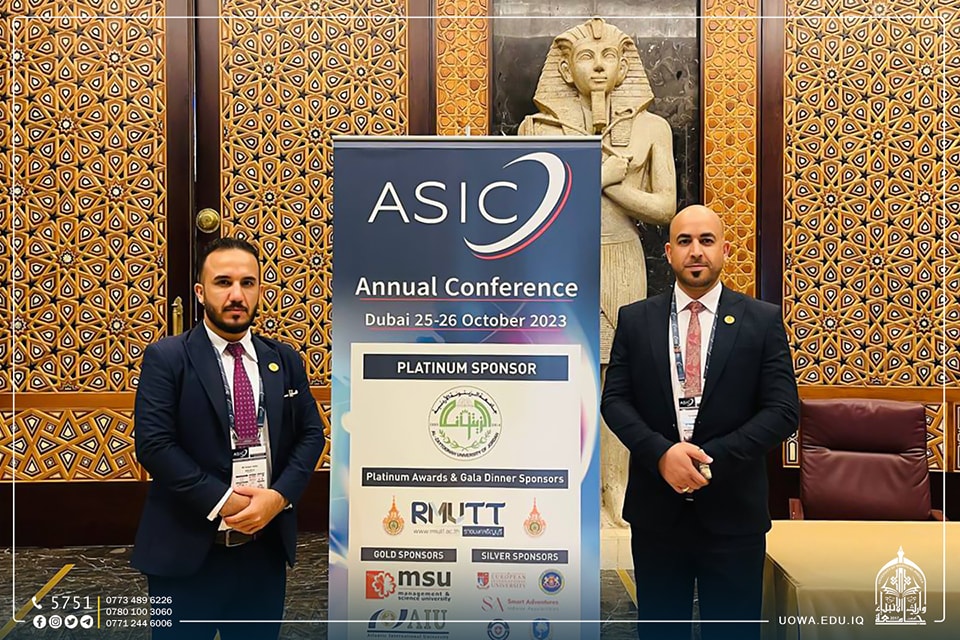 Assistant Professor Dr. Haider Al-Ghanimi, the Director of the Center for Continuing Education, and Assistant Professor Hussein Hazem Al-Ghanimi, the Head of the Quality Assurance Department, participated in the international conference organized by the British organization "Accreditation Service for International Schools, Colleges, and Universities (ASIC)." ASIC is an accreditation body for various international universities, institutes, and academic institutions.