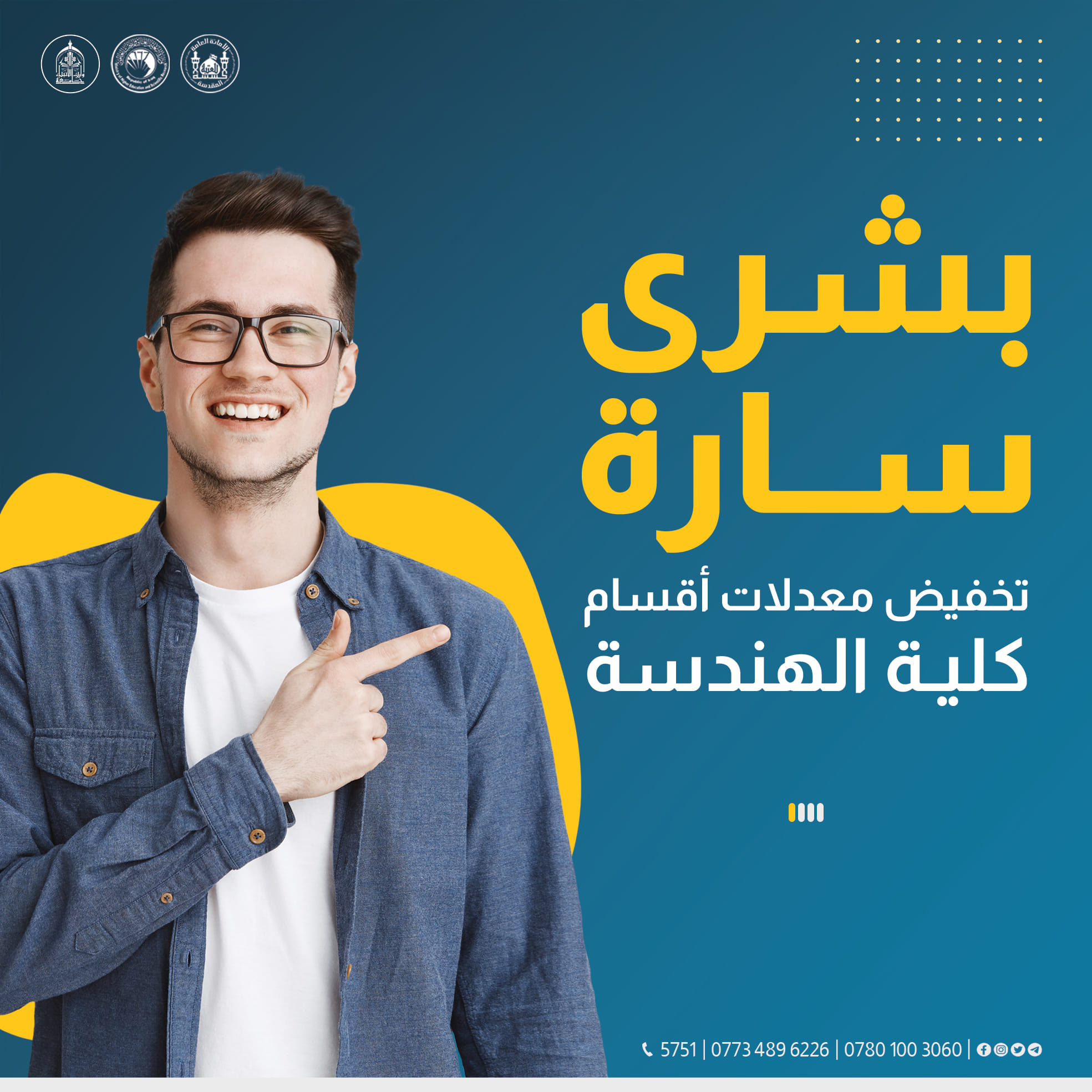 Dear students interested in applying to the College of Engineering at the University of Warith Al-Anbiyaa (peace be upon him), familiarize yourselves with the latest updates in GPA requirements and admissions during the last week of the official registration period.
