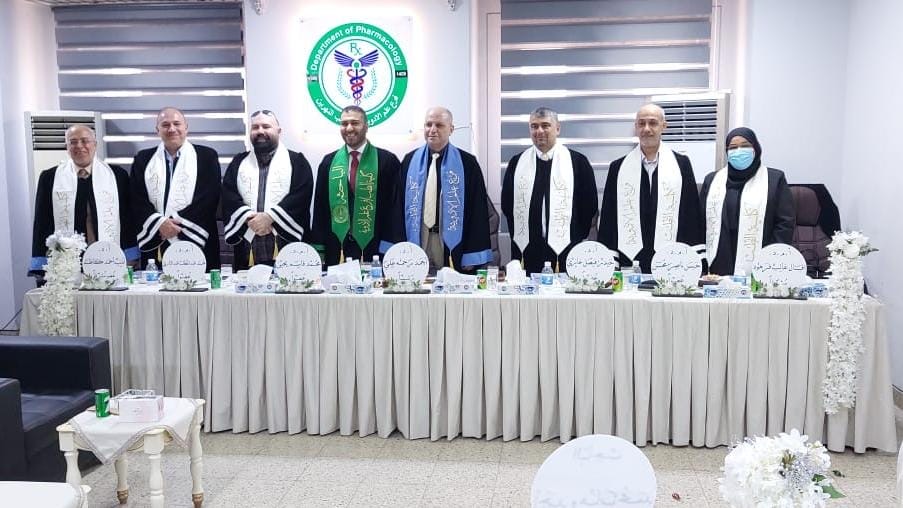 On Tuesday 5/14/2024, Prof. Dr. Adeeb Ahmed Al-Zubaidi, Head of the Department of Pharmacology at the College of Medicine - Warith Al-Anbia University (peace be upon him), participated (as a member and supervisor) in the committee to discuss the thesis of the doctoral student (Ahmed Wahab Muhammad) in the Department of Pharmacology - College of Medicine / University of Nahrain, entitled: