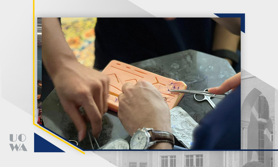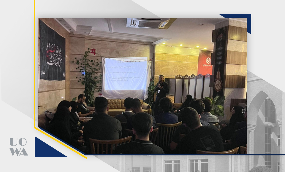In an atmosphere of giving and service, and to ensure their readiness to provide the best medical services in the field during the Arbaeen pilgrimage of Imam Hussein, peace be upon him, part of a series of training workshops for students of the College of Medicine at the University of the Prophets’ Successor, organized by the International Imamate Organization (IMI), a practical workshop entitled Suturing Skills, presented by Dr. Mudussar from the United States of America.