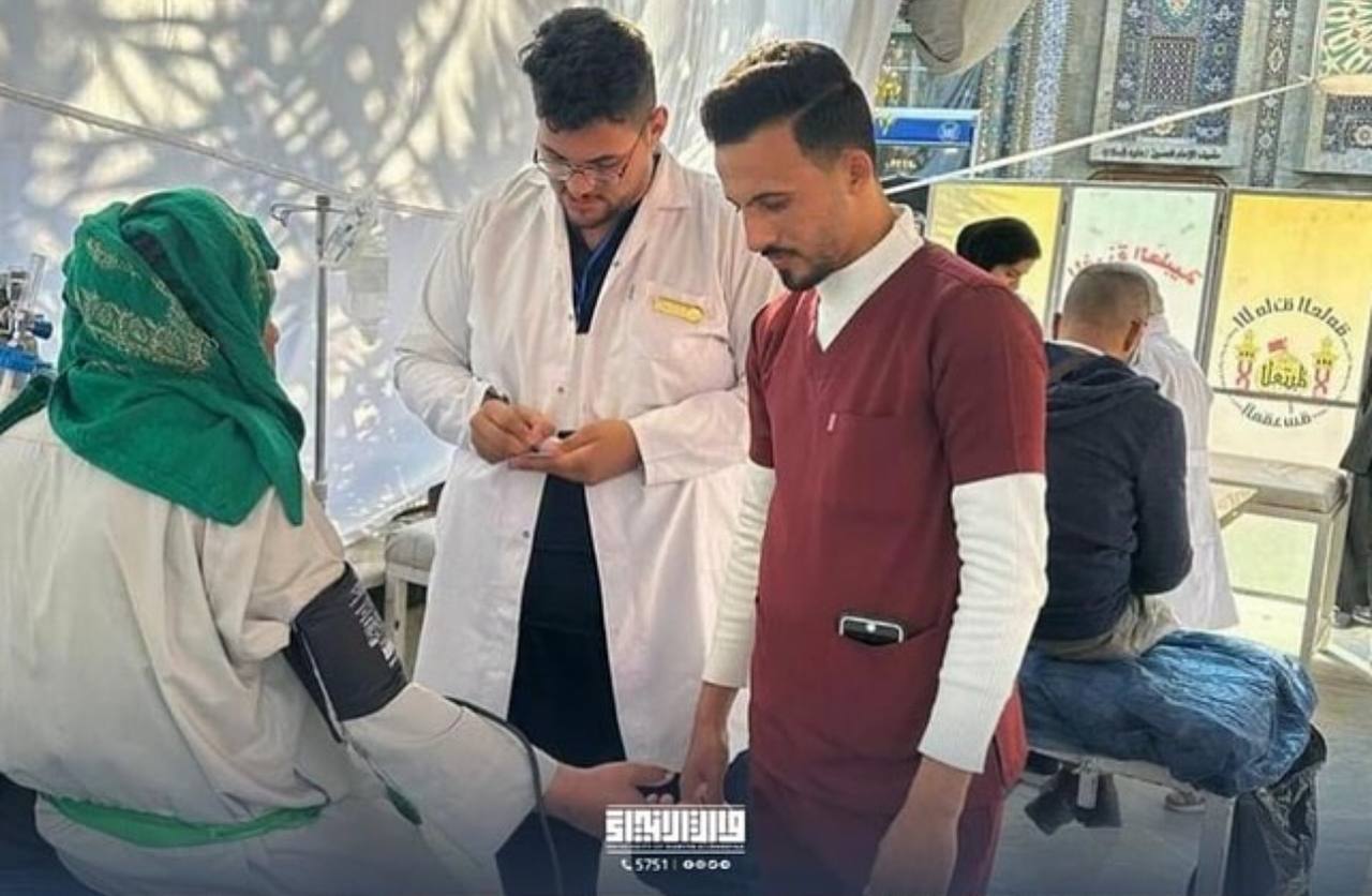 Under the supervision of a number of faculty members, a number of students from the Faculty of Medicine and the Faculty of Nursing at the University of Heir al-Anbiya (peace be upon him) provided medical services to the visitors of Imam Hussein (peace be upon him) on the night of the middle of Sha’ban.