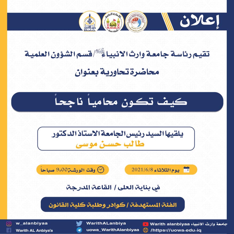In support to the legitimate demands of Iraqi peaceful protests, and because of the country exceptional circumstances, the presidency of the University of Warith Alanbiyaa initiated a constitutional legal reform paper through which it can offer reform proposals for change that would draw a roadmap for peaceful demonstrators.
